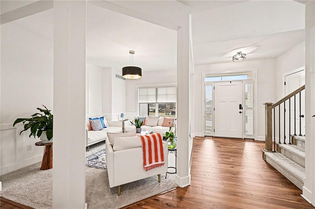 Stunning Two-Story Willow Plan with Recent Upgrades! New window coverings, an enlarged kitchen island, and upgraded appliances elevate this already impressive home. Granite countertops, a walk-in pantry, and an open layout make entertaining effortless. The formal dining room flows into the great room featuring a fireplace, built-in cabinets, and floating shelves, with carpet adding warmth throughout. Upstairs offers a luxurious primary suite with adjacent laundry, freestanding tub, large shower, and walk-in closet, plus three additional bedrooms including one with a private bath. Enjoy the covered patio on this non-walkout lot.