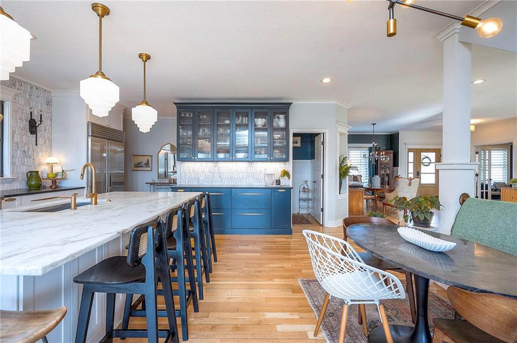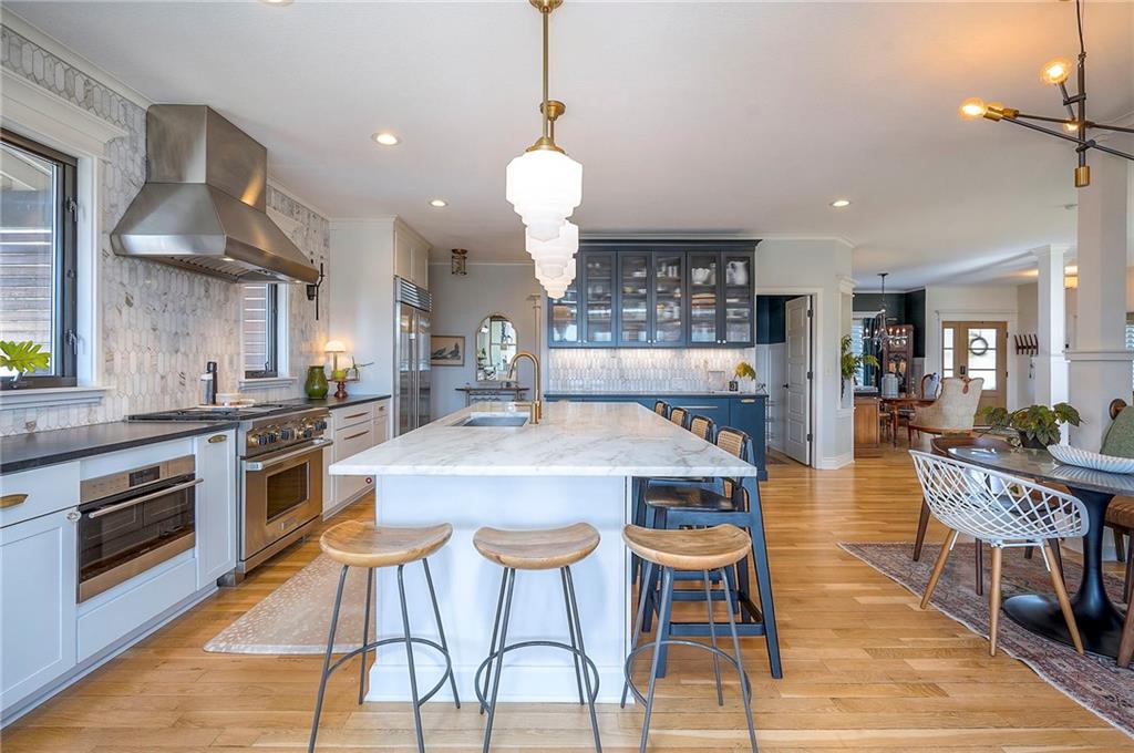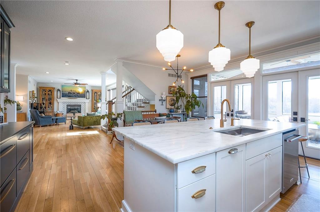 A truly exceptional home, crafted with remarkable attention to detail. Owned by an interior designer, this residence showcases extensive upgrades and thoughtful enhancements throughout. The fully renovated kitchen features a 36" Wolf gas range with a heavy-duty vent hood, a 48" Sub-Zero side-by-side refrigerator, custom storage solutions, a stunning 10' marble island, and wood flooring that extends through the entire home. The great room is anchored by a striking fireplace surrounded in hand-painted marble tile. A custom-built screened porch expands the living space, complete with its own fireplace and radiant heated floors. Step outside to an impressive outdoor kitchen, fire pit, flagstone patio, and a 6-person hot tub, all surrounded by extensive professional landscaping. The newly renovated primary bath offers radiant heated floors, a spacious vanity with optimized storage, a bidet, and illuminated mirrors. The expansive primary walk-in closet features custom ELFA organization and heated tile flooring. The finished lower level includes stained concrete floors, a second kitchen area with an oven, wine fridge, refrigerator, and a large custom solid-wood slab bar. A queen-size Murphy bed adds versatility to the space. Every inch of this home has been thoughtfully designed and impeccably maintained. Prepare to be truly impressed.