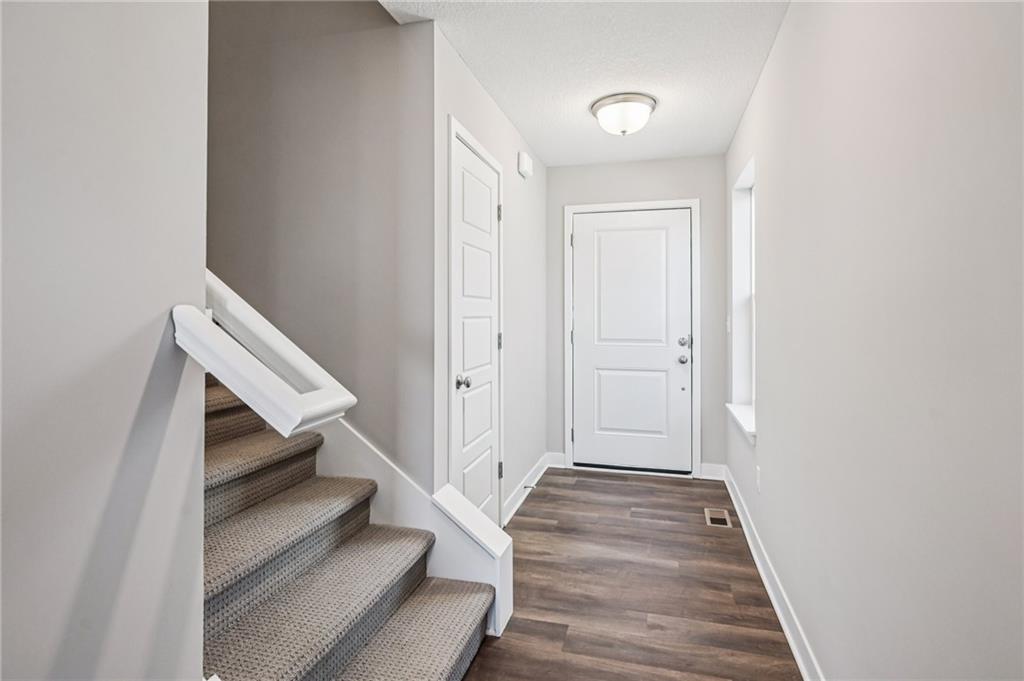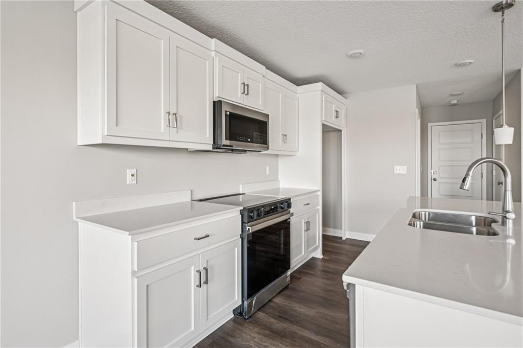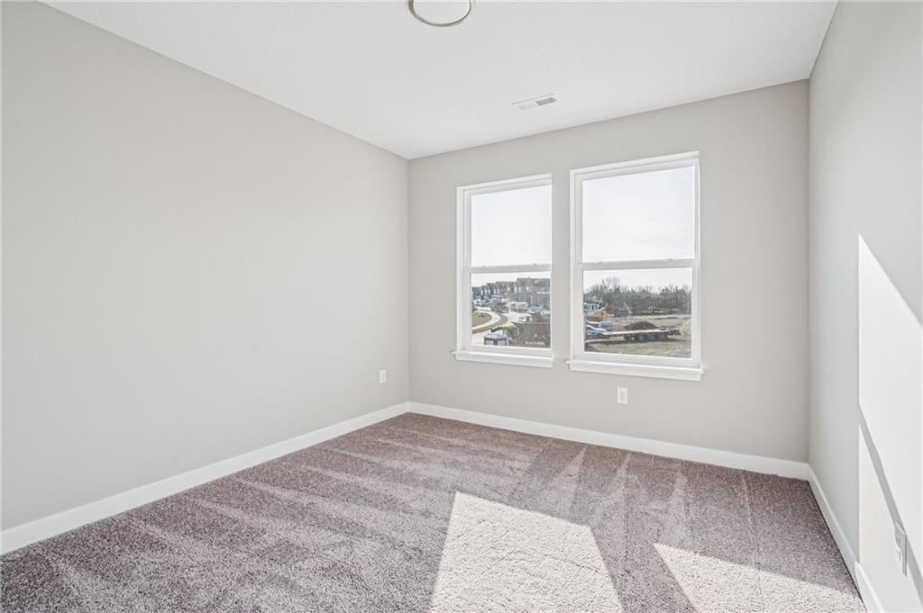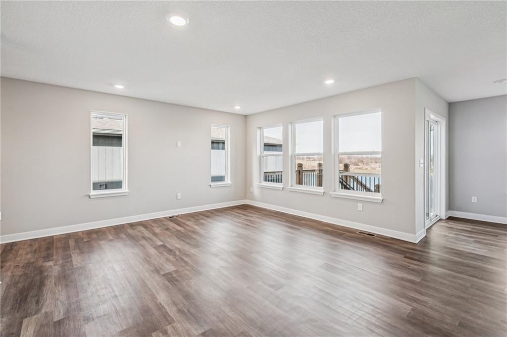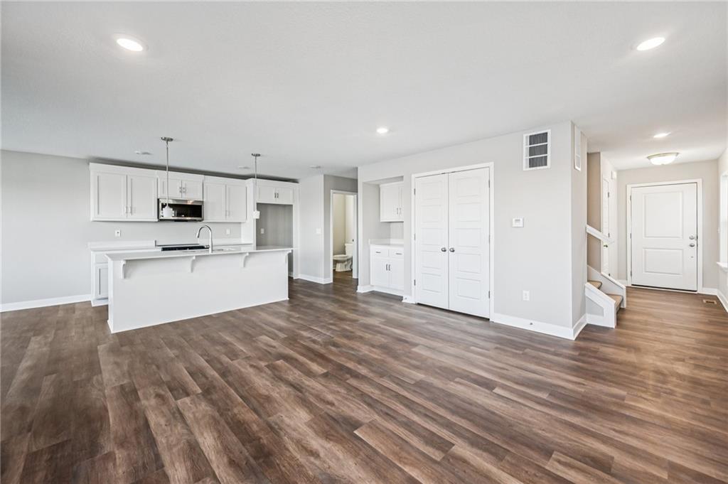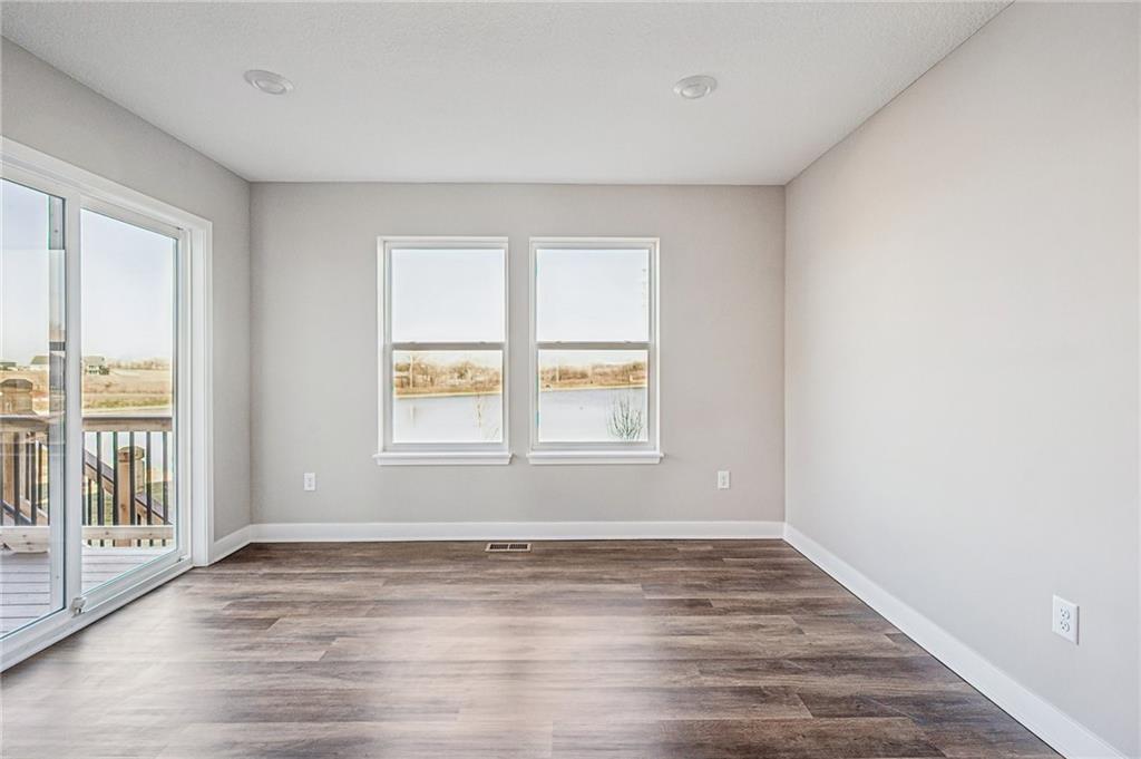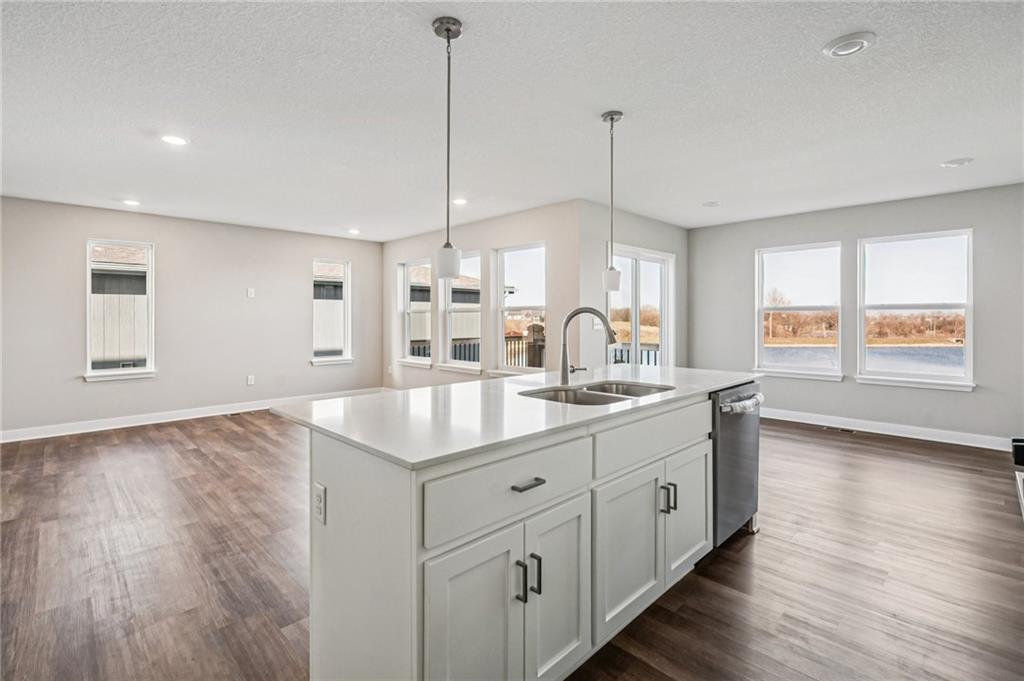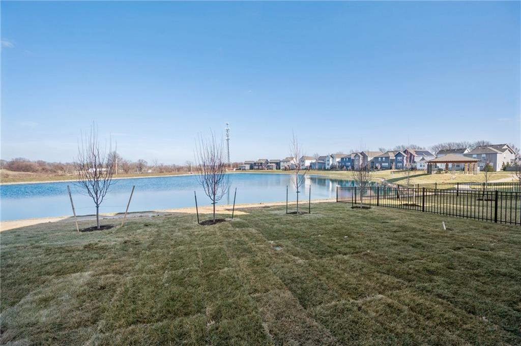 Spacious main level for daily living with all bedrooms and laundry on the upper level. This home overlooks the beautiful neighborhood pond! Includes enhanced design package with upgraded finishes. Large quartz countertop island in the kitchen that overlooks the Dining room/Great Room. Hardwoods throughout the main level. Large Primary Bedroom with an open spa-like bathroom. The Primary Bathroom has an oversized quartz vanity with double sink and a walk-in tiled shower. Beautiful landscaping included. Possible 5th bedroom with basement finish. Amenities include the luxury of a beautiful two-acre pond, pool with playground, covered pavilion with a grill.
