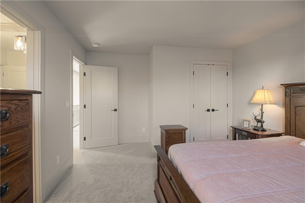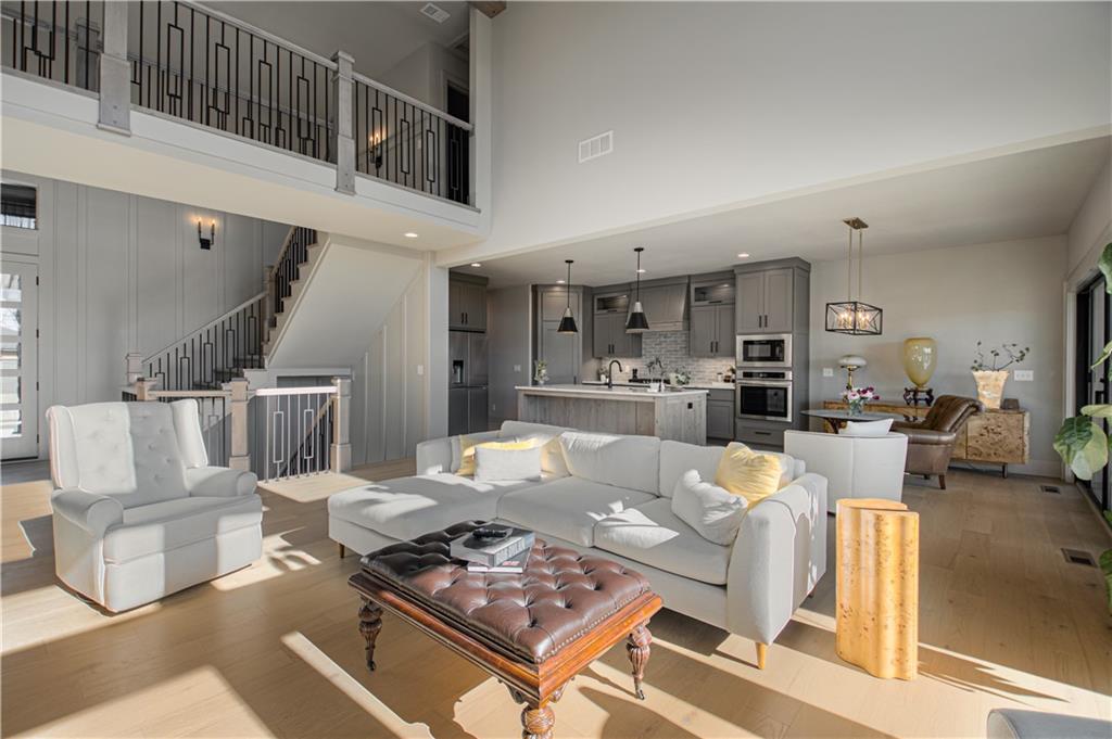 Stunning Light Filled Home with Soaring Ceilings-Barely Lived In and Better Than New! Gorgeous Great Room with Wall of WIndows and 18 ft ceilings, Floor to Ceiling Stone Fireplace and Built Ins! Open Concept floor plan! Gorgeous Hardwood Floors Throughout. Chef's Kitchen includes Oversized Island, Gas Cooking with Hood, SS Convection Oven, Refrigerator, Dishwasher and Microwave. Large 7x4 ft Walk in Pantry. Boot Bench off Garage. Charming Powder room with Decorative Tile feature wall. Spacious Dining Room.10 ft Slider opens to Covered Deck with Stone Fireplace and Maintenance Free Composite Floor. Luxurious Primary Bedroom includes feature wall and Hardwood floors. Luxurious Primary Bath includes Zero Entry Shower, Soaker Tub, Double Vanities with Solid Surface Countertops. 10x8 Walk in closet with amazing built ins including drawer storage and full length mirror. Primary Closet connects to Laundry room - Washer and Dryer stay! Upper level includes Three spacious bedrooms, a jack and jill bathroom and full bath attached to bedroom 4! Amazing upgrades throughout including additional feature walls, dramatic staircase, upgraded black trim windows! Estate lot backs to greenspace. Woodland Trails is a fabulous outdoor lifestyle community with miles and miles of paved walking trails, resort style pool, playground, sports field and fishing pond with fishing dock.