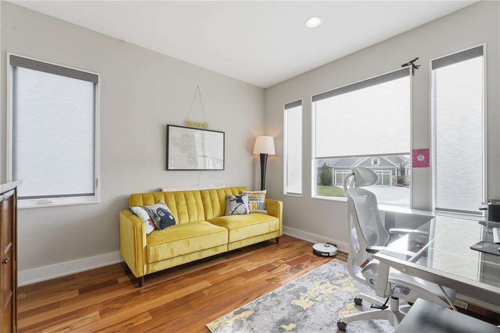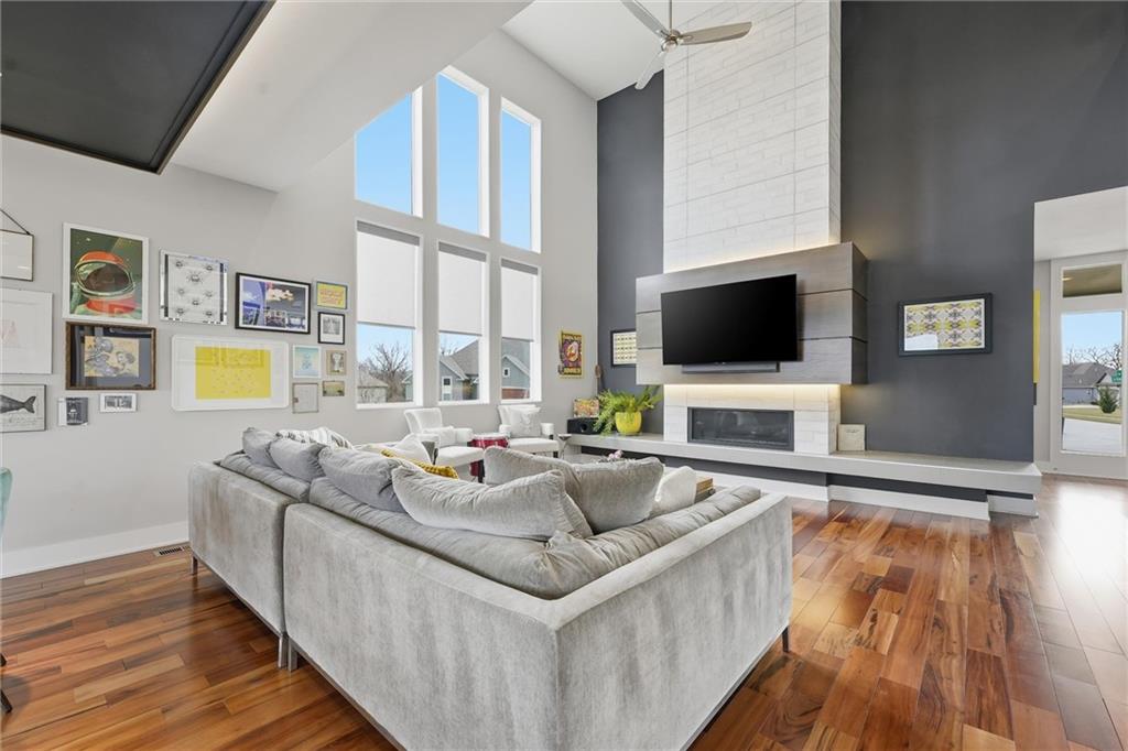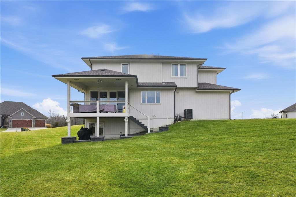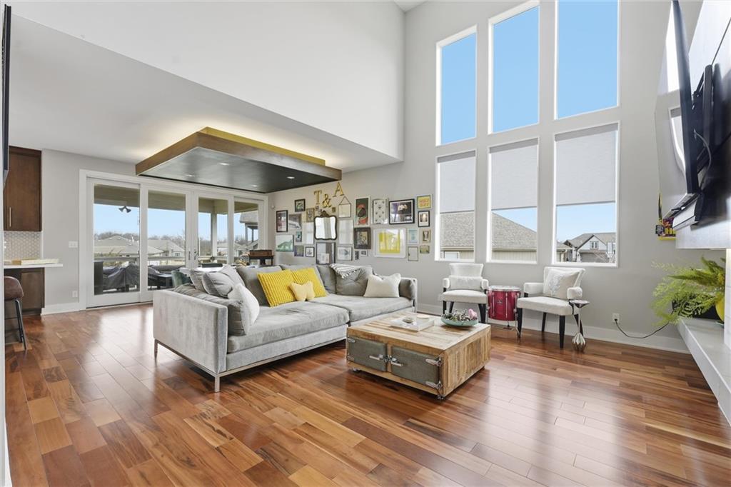 Come tour this contemporary beauty in the sought after Overland Ridge community. Built by Suma Design & Construction, this property boasts 22-foot ceilings in the great room, along with a statement fireplace with designer tile and hearth. Floor to ceiling windows flood the home with natural light. The spacious kitchen offers a gas cooktop, walk-in pantry and Bosch appliances. The expansive primary suite features a spa-like bath, complete with a free standing soaker tub and make-up counter. The 4th bedroom on the main level could double as a home office. A finished lower level provides additional living space with an exercise room (could also serve as a playroom) and a generous non-conforming 5th bedroom with an egress, good-sized closet and a stunning en suite with double vanity, quartz tops, upgraded tile and shower. Extend your entertaining onto the covered composite deck. The owners also added a patio in the back and upgraded landscaping. The oversized 3-car side entry garage has a 240 outlet for an EV. Just a short walk to the community pool and the back deck offers a great view of fireworks on the 4th. This lightly-lived in home is a must-see.