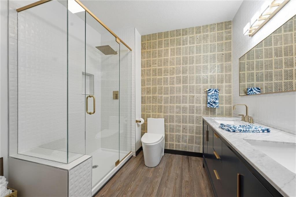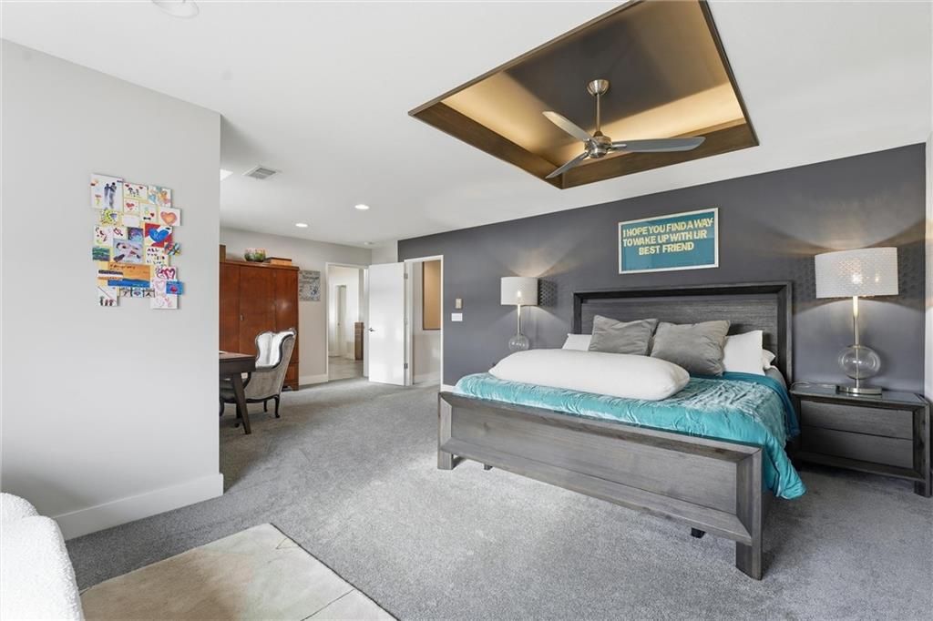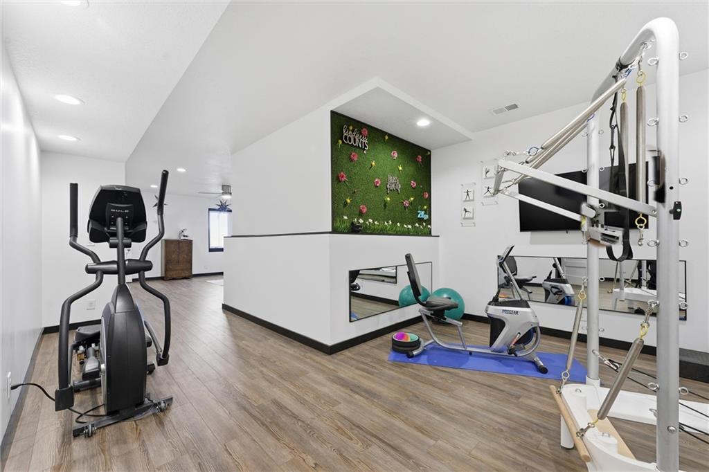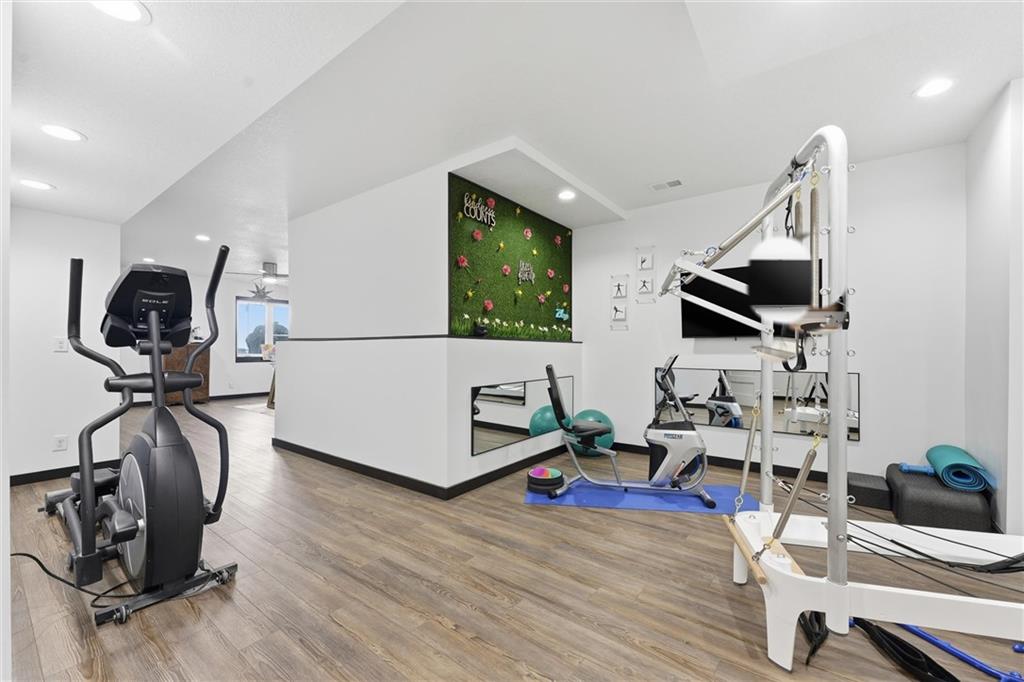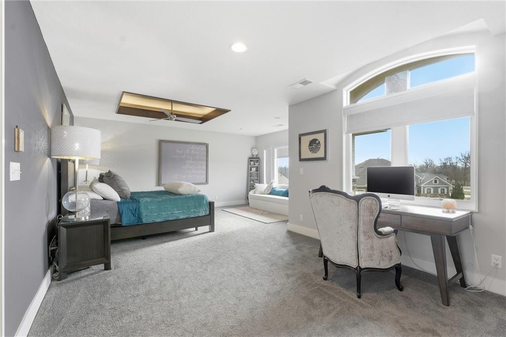 Come tour this contemporary beauty in the sought after Overland Ridge community. Built by Suma Design & Construction, this property boasts 22-foot ceilings in the great room, along with a statement fireplace with designer tile and hearth. Floor to ceiling windows flood the home with natural light. The spacious kitchen offers a gas cooktop, walk-in pantry and Bosch appliances. The expansive primary suite features a spa-like bath, complete with a free standing soaker tub and make-up counter. The 4th bedroom on the main level could double as a home office. A finished lower level provides additional living space with an exercise room (could also serve as a playroom) and a generous non-conforming 5th bedroom with an egress, good-sized closet and a stunning en suite with double vanity, quartz tops, upgraded tile and shower. Extend your entertaining onto the covered composite deck. The owners also added a patio in the back and upgraded landscaping. The oversized 3-car side entry garage has a 240 outlet for an EV. Just a short walk to the community pool and the back deck offers a great view of fireworks on the 4th. This lightly-lived in home is a must-see.