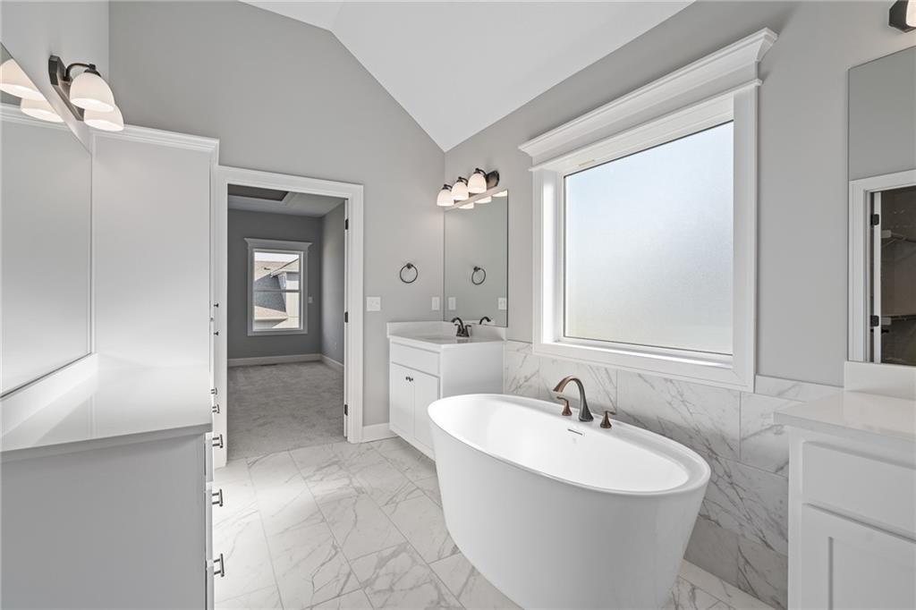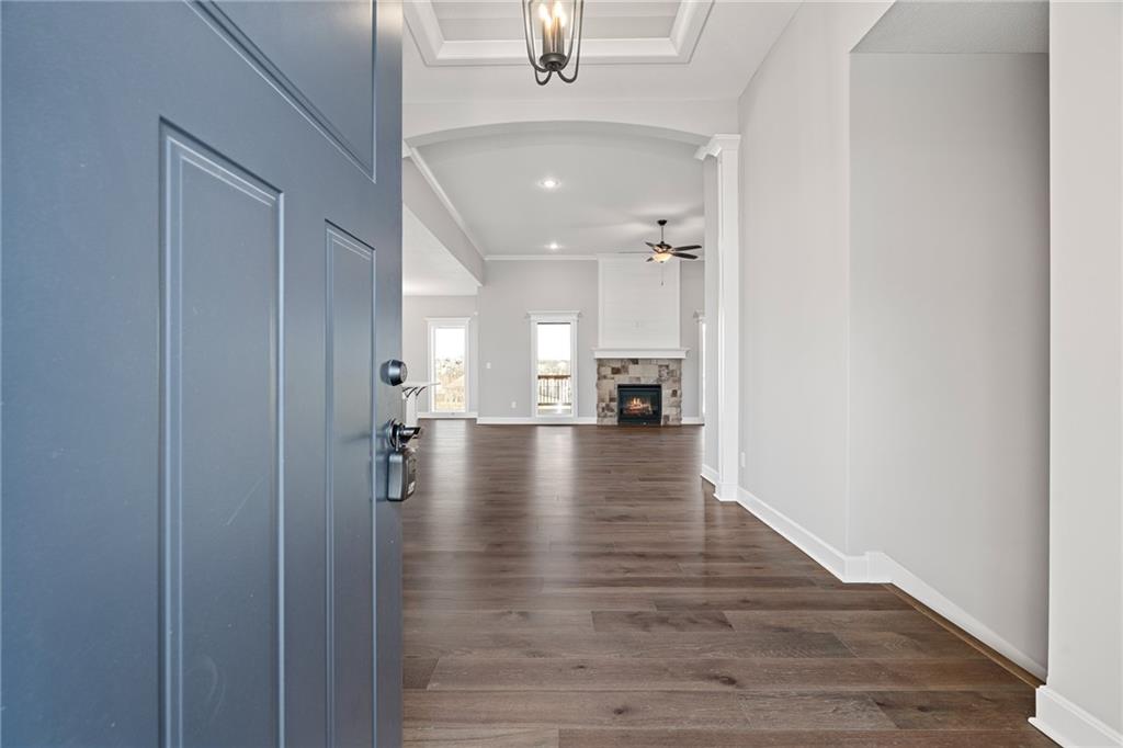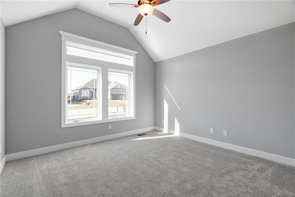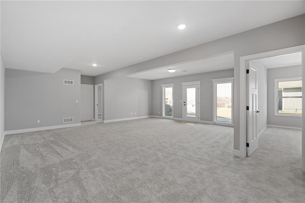 Welcome to Sara’s Meadow, an exciting new subdivision and home to The Drake by Hoffmann Custom Homes — a beautifully designed Reverse 1.5 Story that blends warmth, modern style, and smart construction. From the moment you walk in, this home is filled with natural light, soaring ceilings, and refined finishes throughout. The main level features gorgeous dark colored engineered hardwood floors and a chef-inspired kitchen showcasing light, light granite countertops, dark hardware, a gas cooktop and wall oven, enameled cabinetry, and under-cabinet lighting that makes the space shine — perfect for those who love to entertain! The great room is anchored by an eye-catching gray stone fireplace with enameled wood trim accents and opens seamlessly to the covered deck, ideal for relaxing. The main-level owner’s suite truly feels like a private retreat with a freestanding soaker tub, double vanities, and a generous walk-in closet. A second bedroom on the main floor makes the perfect nursery, home office, or guest space, along with a full bath and a conveniently located laundry room. Downstairs, the finished walkout lower level adds even more space with two additional bedrooms, a full bath, and a spacious rec room complete with a granite wet bar — plus walkout access to a covered patio and an oversized backyard that feels both peaceful and private. Thoughtfully engineered for modern living, this home includes 2x6 exterior wall construction, is prewired for solar panels, offers EV charger compatibility, energy-saving features, and comes backed by a 10-year structural warranty. If you’ve been waiting for the perfect blend of style, quality, luxury, comfort, and location — you need to come experience “The Drake” in Sara’s Meadow. This one is a showstopper!