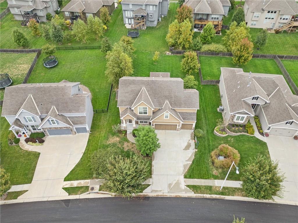 Well maintained, though could use some fresh paint in spots, 1 owner home in sought after Staley Hills. This is the expanded Lexington II by McFarland. Seller loves the neighborhood, their neighbors, convenient location but no longer needs all the space & ready to downsize. You'll love the openness of the main level with gleaming hardwood floors & abundance of windows allowing for lots of natural light! Formal dining area makes ideal office, additional living area or as the seller has done, perfect place for your grand piano. The great room has fireplace with beautiful stacked stone surround, bookcases & curved wall of windows overlooking the backyard. Spacious kitchen is an entertainer's dream with large island including bar area for seating or the perfect buffet serving line, granite counters, abundance of cabinets, many with roll out shelves plus a HUGE walk-in pantry, stainless appliances featuring a gas range and a new dishwasher. Spacious eating area w/vaulted ceiling opens onto the covered patio which extends into the expanded patio the seller included when building the home. The primary suite features a raised ceiling with indirect lighting, HUGE walk-in closet, double vanity (granite) with a cabinet stack, tiled floor, corner whirlpool and separate shower room w/oversize tiled shower. Secondary bedrooms each have a vaulted ceiling, ceiling fan & private bath access. Bedroom 2 has walk-in closet. Lower level family room is great for movie nights, room for pool table & great hang out area for kids and adults of all ages! There's a 5th bedroom with walk-in closet but also makes a great private office, work out/craft/play room for all the kids' toys! There's also a 4th full bath in addition to unfinished storage areas. Enjoy the neighborhood pool, ponds & trails! Great location is close to stores, services, restaurants, entertainment & main roads for quick access to KCI airport & downtown KC! Kids can walk to the highly rated elementary & high schools.