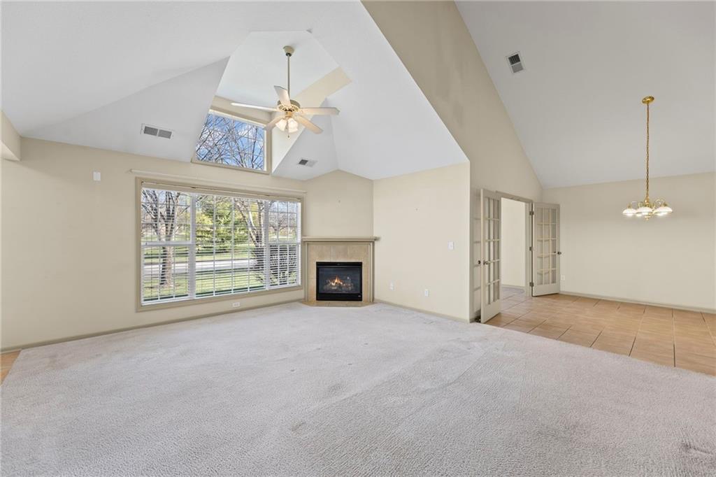 Enjoy The Comfort and Elegance Of Living In This Terrific 1.5 Story Patio/Villa! Located on a cul-de-sac within the coveted St. James Court Subdivision and Blue Valley School District, this maintenance-provided community has no age restrictions. It has a spacious open floor plan along with lofty ceilings that enhance the overall sense of openness and grandeur. The gleaming tile floors reflect natural light throughout the spaces while the elegant great room fireplace provides warmth and charm to this superb house. The terrific kitchen and adjoining dining area boasts plenty of countertop space, tile flooring, breakfast bar, lots of cabinets, pantry, built-in desk. The impressive 16x18 great room showcases the fireplace, c/ fan, carpeting and a wall of windows with lots of natural light. It has a versatile 12x12 sunroom for morning coffee, dining, relaxing and is equipped with tile flooring, vaulted ceiling, double french doors, c/fan, plenty of light. Convenient office area with carpeting, c/fan, window, walk in closet; and with the addition of doors, it can easily be transformed into a third conforming bedroom. The primary suite features a sanctuary of comfort and elegance as it spotlights a spacious bedroom with carpeting, vaulted ceiling, c/fan along with an exquisite en-suite bathroom that includes d/v, ceramic tile, separate shower/tub and huge walk in closet providing a true oasis retreat. It offers one more full bathroom and a laundry room for the ultimate convenience and comfort. The upper level comprises an additional spacious bedroom and a modern full bathroom. This awesome home showcases other features including new roof (2025), thermal windows, sprinkler system plus all of the kitchen appliances are staying too! Incredible HOA amenities include club house, exercise room, party room, swimming pool, trails, lawn maintenance, snow removal and many other items! Wonderful curb appeal, fantastic location along with nearby Blackbob and Heritage Parks!!