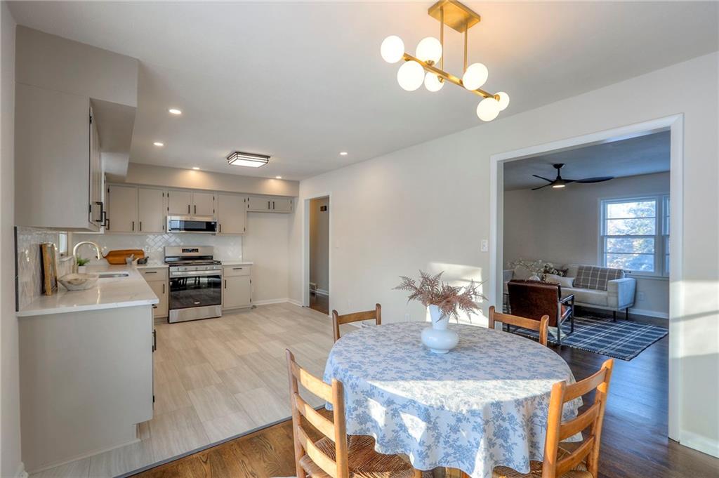 Charming home in Kansas City featuring a classic brick front, off-street parking, and a two-car garage. Step inside to a welcoming living room that flows into a beautifully remodeled kitchen complete with new fixtures, freshly painted cabinets, and new granite countertops. The home has been refreshed with new carpet and refinished hardwood floors throughout, offering a clean, updated feel while maintaining its timeless appeal. Check out the basement finishes as well