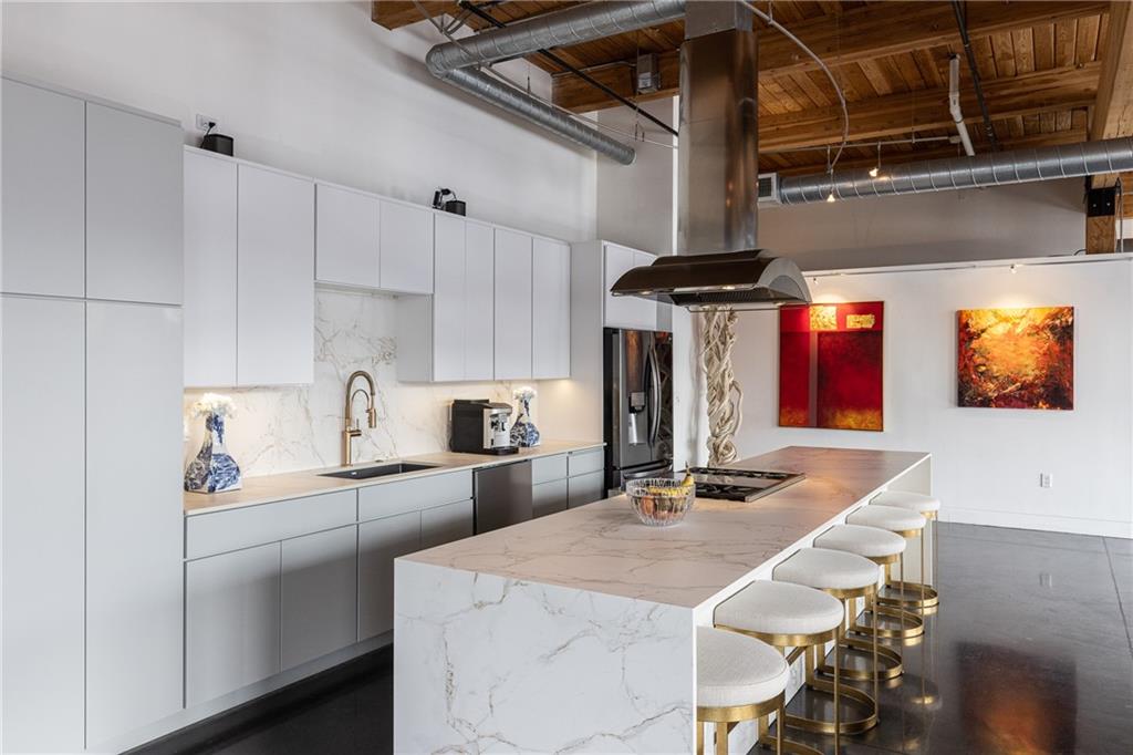 Show stopping, eye popping urban condo overlooking downtown Kansas City. Blending polished concrete floors, 13-ft. ceilings, 600-square foot deck (YES, 600 s/f!), Wolf and Miele high end appliances, $100,000+ in new counters and bath tile alone PLUS new kitchen cabinetry installed 2024. This condo emits bespoke class. Nearly 2,100 square feet single level living and 100-ft. of continuous windows create expansive views and an outdoor space unrivaled at this price point downtown. TWO programmable sets of window treatments throughout with one 20% darkening and the other complete blackout. No detail overlooked with custom California Closets floor-to-ceiling transformation with every available accessory, organizational elements and back lighting. Home to just 31 owner residents Conover Place was designed/constructed as a condominium rather than a conversion meaning all key mechanical elements in newer construction are integrated systems for HVAC, plumbing, electrical and fire protection ensuring owner comfort, safety, efficiency and usually less future assessments. HOA installed new state of the art security system in 2025. Two parking spaces in secure underground garage included with this unit. Solid financials, fiscal responsibility HOA with reserve fund exceeding annual operating expenses. Attainable monthly dues, no assessments scheduled, pride of ownership shows. Tax abatement (50%) through 2026. Steps from the street car stop and easy walking to downtown, Power & Light District, T-Mobile Center, Kauffman Performing Arts Center, Crossroads and all the attractions in Berkley Riverfront including CPKC Stadium.
