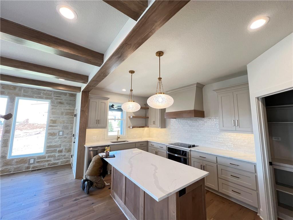 The Destin by Rodrock Homes offers elevated two-story living designed for modern families in Sundance Ridge. Situated on a level lot, east-backing homesite, this home provides space, style, and connection. The bright, open main level links the great room, dining area, and gourmet kitchen with large island and walk-in pantry—perfect for busy weekday dinners and weekend gatherings. A covered patio extends living outdoors. Upstairs, the private primary suite offers a spa-like bath and spacious walk-in closet, with three secondary bedrooms and a convenient laundry room nearby. Exceptional craftsmanship and thoughtful details throughout. Photos are of a prior model and may show optional features. Enjoy The Village amenities—two pools, clubhouse with fitness center, indoor gym, pickleball, bocce, playground, community garden, and trails—in Blue Valley Schools. Just 11 min to Blue Valley High, 8 min to Price Chopper, 16 min to BluHawk, and 16 min to Heritage Park.
