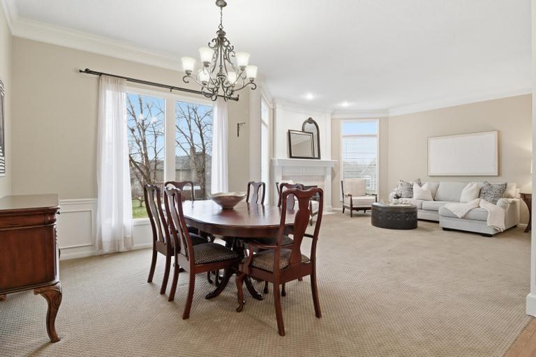 Welcome home to this beautifully maintained, one-owner, two-story residence offering 5 bedrooms, 4 full and 1 half baths, offering timeless design throughout. From the moment you enter, the elegant curved staircase in the grand 2 story entry sets the tone, complemented by a rare dual-staircase layout that adds both function and architectural interest. The main level boasts an open floor plan with living room flowing into formal dining space, plus an office with double-door entry, and centrally located half bath. The expansive kitchen features fresh paint, large center island, generous pantry, and ample cabinetry—perfect for everyday living and entertaining alike. The Primary suite is located on the second floor with a double-door entry. Thoughtful updates include a refreshed primary bath, creating a serene and spacious retreat. Three additional bedrooms, all with walk-in closets, two additional bathrooms and a laundry room with utility sink complete the upper level. A walk-out, finished lower level provides exceptional flexibility for recreation, guests, or additional living space, seamlessly connecting indoor comfort with outdoor enjoyment. Lovingly cared for and thoughtfully designed, this home offers quality, space, and enduring appeal in every detail. Don't miss this rare opportunity to own a meticulously kept home that combines classic elegance with modern updates.