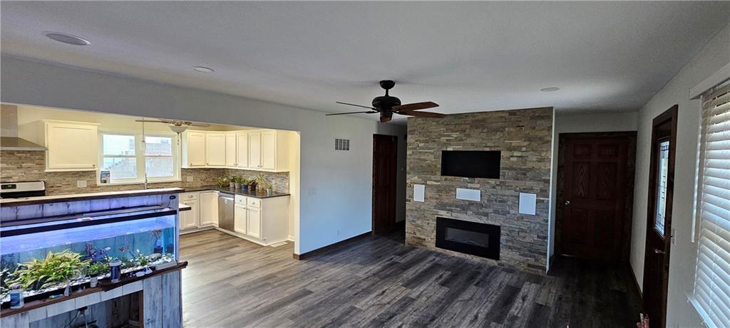 Welcome to this inviting 3 bedroom, 1.5 bathroom home situated on a generous city lot. This move-in-ready home has been recently remodeled and includes a new roof, siding, windows to the exterior and furnace, water heater, flooring and paint inside the home. This home offers a spacious living area with an electric fireplace, perfect for relaxation. The large kitchen includes granite countertops, pantry for storage, and stainless steel appliances. The full basement includes a half bath and additional living area and storage area with the option of a 4th non-conforming bedroom. A large 2 story garage on the property offers ample space for vehicles with 2 garage doors and additional upstairs storage. The expansive backyard includes a pavilion for hosting gatherings, a deck for enjoying serene afternoons, and a shed for additional storage. This home truly combines comfort and functionality. Don't miss the opportunity to make it yours!
