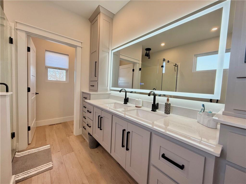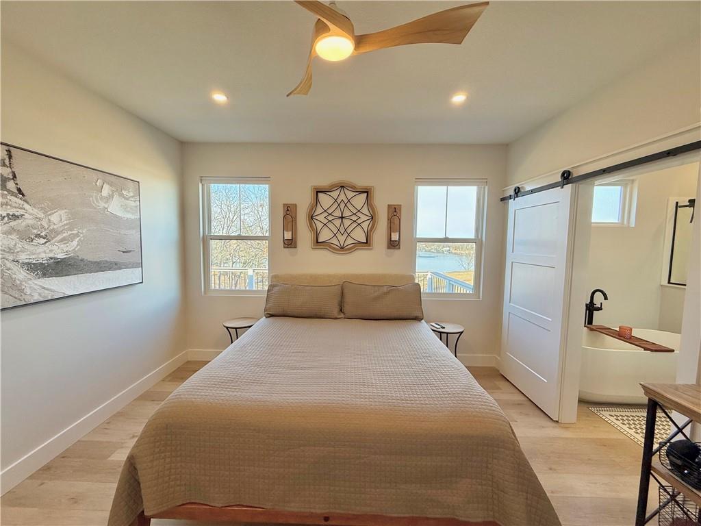 A truly distinguished residence, where refined design meets breathtaking natural beauty. This exceptional custom-built, open-concept 4-bedroom, 3.5-bath home is thoughtfully crafted for elevated living, seamless entertaining, and multi-generational comfort, all framed by sweeping panoramic lake views. At the center of the home, the designer kitchen blends sophistication and function with open shelving, an expansive island with seating, oversized storage drawers, and a stunning 7×7 walk-in pantry ensures a pristine, clutter-free culinary space worthy of the most discerning buyer. Set on two private lots, the property offers rare space and tranquility, allowing you to enjoy golden sunrises, dramatic sunsets, and unobstructed views of Lake Viking’s Fourth of July fireworks from the comfort of home. Every detail has been curated to embrace the lake lifestyle while maintaining privacy and serenity. The finished lower level features soaring 10-foot ceilings and serves as a luxurious guest retreat. Modern design elements include an epoxy floor, a wet bar with a refined speakeasy ambiance, and a climate-controlled garage, creating a perfect blend of comfort and sophistication after a day on the water. Outdoor living is equally impressive, featuring a maintenance-free deck and a covered walkout patio below with a finished ceiling, ceiling fans, and dimmable soffit lighting that enhances evening ambiance while providing added security. Surrounded by mature trees, abundant wildlife, and tranquil lake scenery, this nearly new home is impeccably maintained and truly one of a kind. Additional highlights include a zero-entry design, ample storage throughout, spray foam insulation, a two-car attached garage, manicured landscaping, and a coveted corner-lot setting offering million-dollar views. Conveniently located near a lake entrance, this remarkable home delivers luxury, comfort, and timeless Lake Viking living at its finest.
