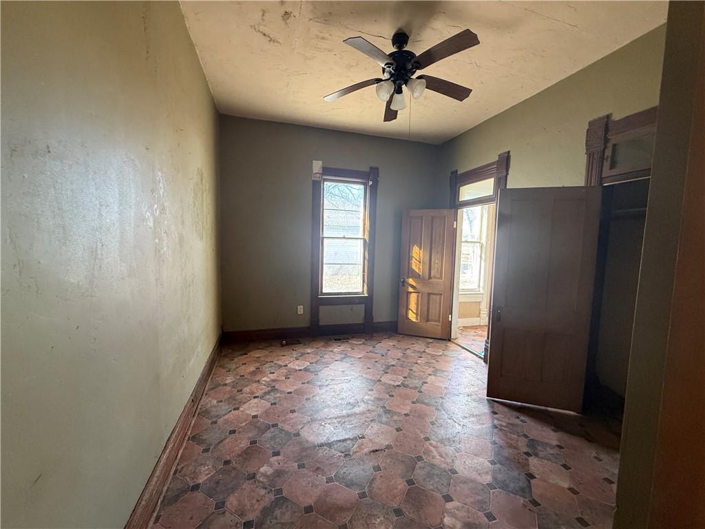 Calling all investors, flippers, and short-term rental specialists! This historic bungalow sits just blocks from Hamilton’s thriving downtown district in the heart of Quilt Town USA—one of Missouri’s most visited small-town tourist destinations with strong Airbnb demand. Set on an oversized ½+ acre lot, this property offers rare space and expansion potential this close to the main business strip. With approximately 1,212 sq ft, 2 bedrooms, 1 full bath plus a half bath off the kitchen, large living room and formal dining room, the layout is ideal for conversion into a high-yield short-term rental, boutique Airbnb, or charming long-term rental. Inside you’ll find valuable original features that add serious resale and rental appeal after renovation: • Original paneled wood doors and period millwork • Decorative door and window casings with transom windows • Hex-pattern vintage vinyl flooring • Exposed brick chimney feature • Large room sizes and tall ceilings Condition: This is a true heavy-rehab project. The roof is in very poor condition and has caused extensive interior damage including plaster failure and ceiling damage in areas. Property is being sold strictly AS-IS. Financing advantage: Seller is offering owner financing with 20% down, creating a rare opportunity to acquire with flexible terms and strong upside. With Hamilton’s tourism traffic, walkable location, oversized lot, and preserved architectural character, this property has excellent potential for a standout Airbnb, flip, or long-term rental once renovated. Bring your contractor, your vision, and unlock the upside in one of Missouri’s most charming tourist towns.