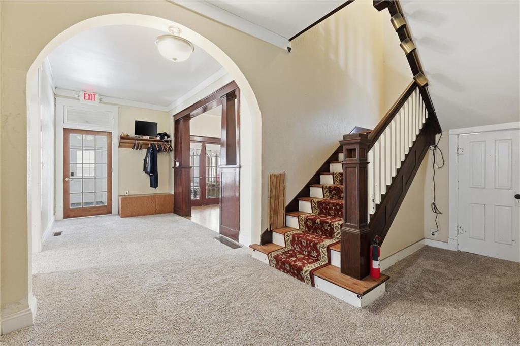 A rare opportunity to own a landmark home in one of Excelsior Springs’ most desirable locations. Built in 1917 as the rectory for the former St. Anne’s Catholic Church next door, this Colonial Foursquare home blends architectural heritage with extensive modern updates. Offering 4 bedrooms and 3.5 baths, the layout includes a living room, library, den, and multiple secret nooks for quiet escapes—hidden under the stairs and within an upstairs closet. A large east-facing sunroom captures the rising sun and provides a peaceful daily retreat. Two primary bedrooms—one on the main floor and one upstairs—offer flexibility for families, guests, or multi-generational living. The upstairs primary bath features a walk-in shower with dual shower heads, while the modern kitchen anchors the home for everyday life and entertaining. An unfinished, oversized walk-out upper deck awaits the next owner’s vision—ideal for a rooftop lounge, garden retreat, or entertaining space. Outside, the home features a shaded back and side yard with mature trees, recently trimmed and groomed for health and light. A small back deck and barbecue area with paving stones provides an additional outdoor gathering space and offers an opportunity for light improvement or customization. Major systems updated within the last two years include roof, dual HVAC and heating systems, tankless hot water heater, plumbing, and central vacuum. Beautifully restored hardwood floors run throughout, preserving the home’s original character. The location is exceptional: directly across from the historic The Elms Hotel and Spa, with a new elementary school immediately behind the home, and just steps from downtown Excelsior Springs and Siloam Mountain Park. Perfect for couples or families, this property is also well-suited for an Airbnb or short-term rental setup.