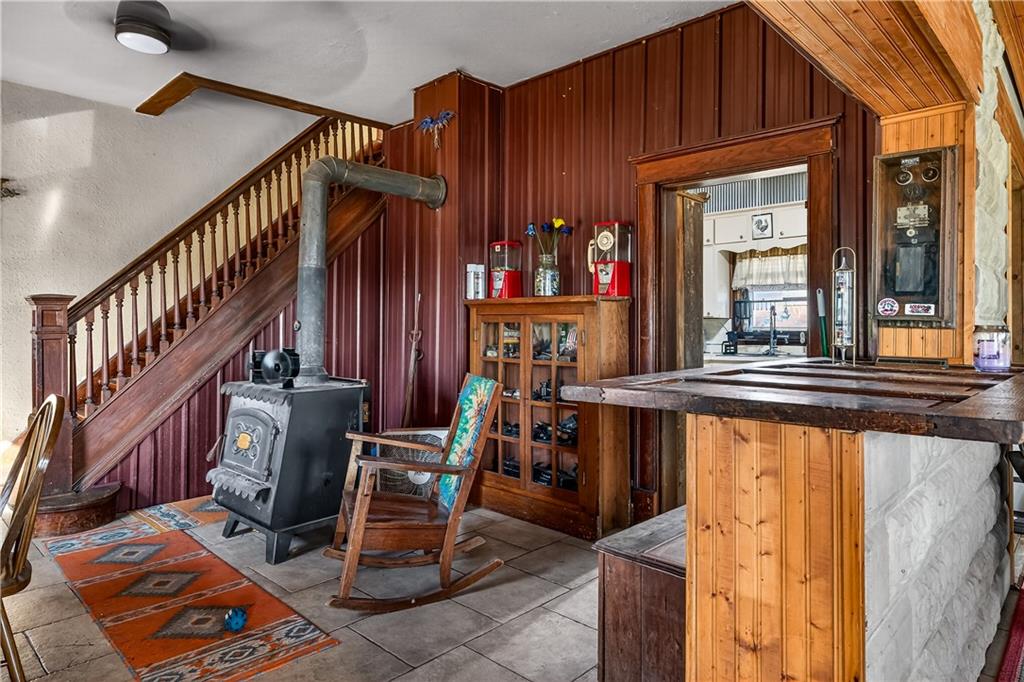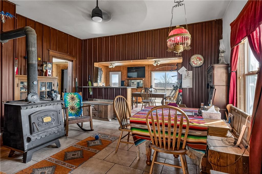 This historic homestead constructed in 1905, is a homesteaders, hunter/wildlife lovers, Air B&B potential for nearby Lake Perry or a horse-lover's dream. Architecturally classic stone home has not only withheld through time, but has had a beautiful continuance of improvements and updates on site bringing into modern times. Entering in the historic wood floors and original wood accents, doors, stairwell, flooring is evident throughout. Grand spaces, with the original parlor turned into the Primary bedroom on main floor. Two refurbished full bathrooms exist on the main floor level, with a full laundry center. Gather a book and coffee on a cold night and sit by the wood burning stove. Towards the back, elements like original doors have been used for countertop, natural beadboard accents like a log cabin on the south family room overlooking the Kansas countryside. The upstairs offers two large bedrooms. The walkout Basement has been refurbished and added onto over the years, with current owner in process of providing a kitchenette and bathroom. The exterior offers plenty of grassland on your 2 acres, with a wooded area to the west with nature walk and bridge over the waterway. A rustic fenced in pasture offers a great location for your horse care, or other farm life experiences. Utilities are reasonable with the thick stone walls and additional insulation added, plus the added wood stove on cold nights.