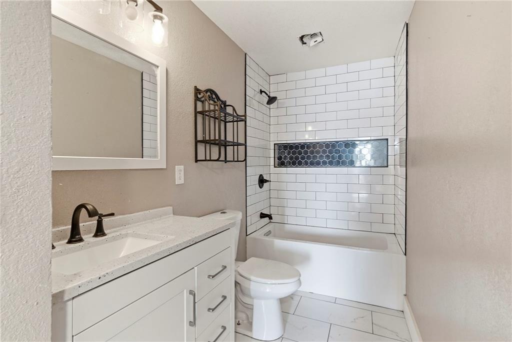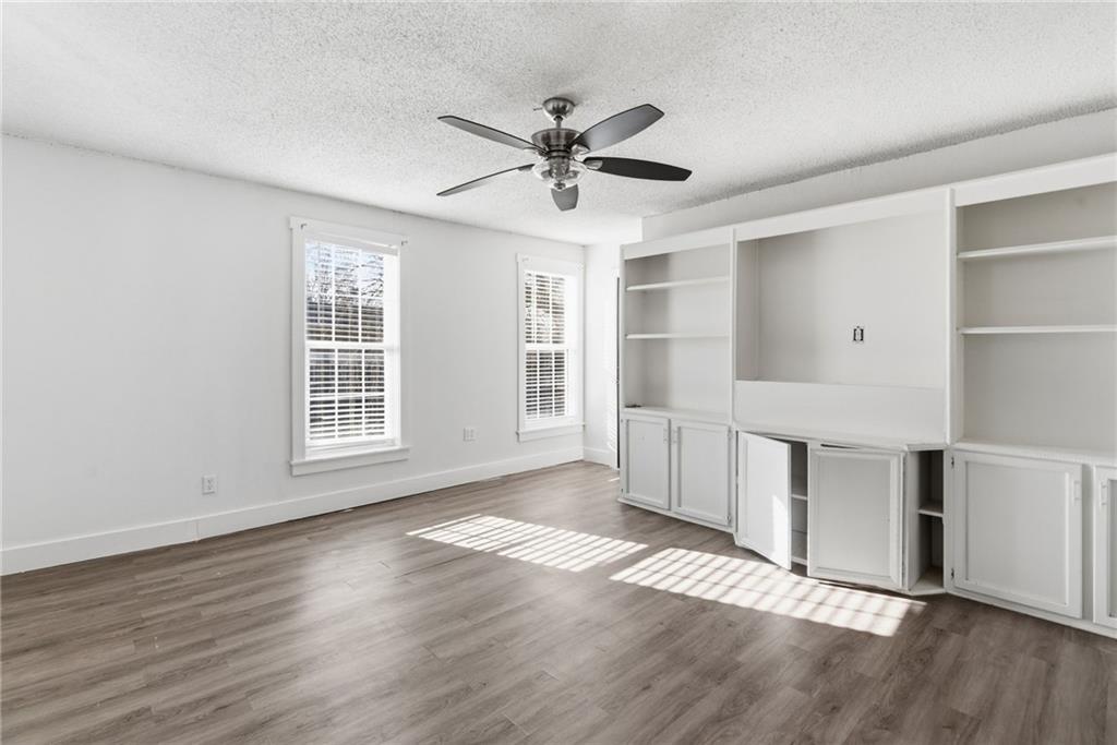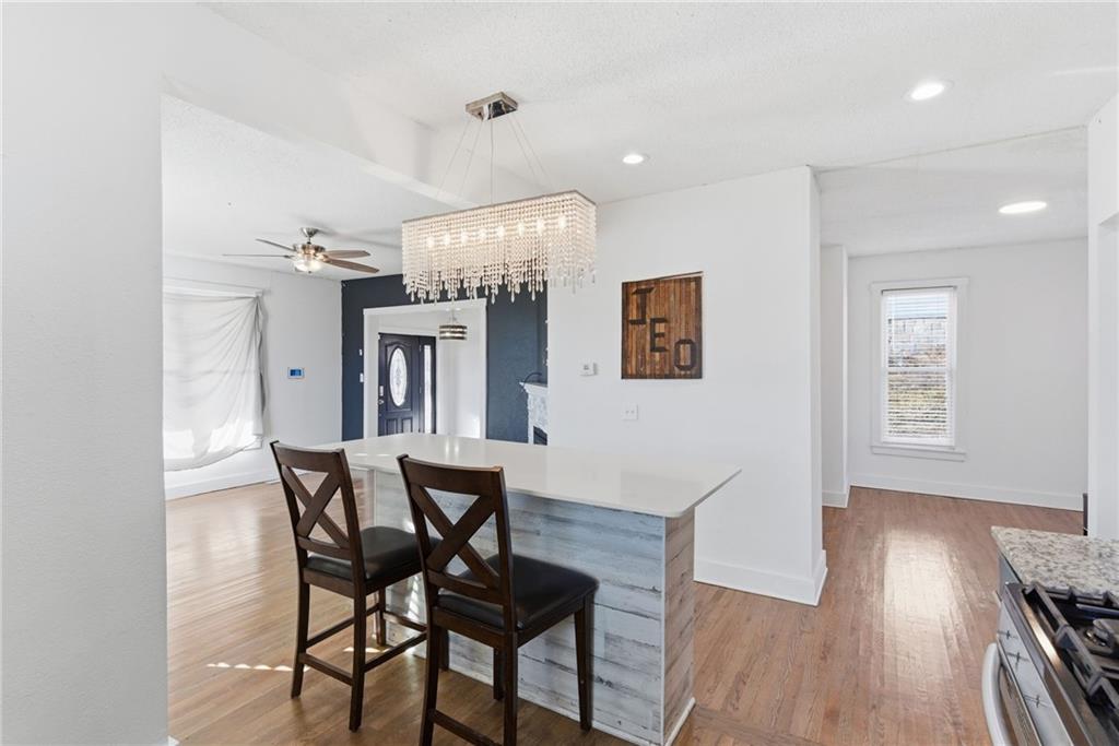Enjoy your mornings or evenings from the inviting front porch of this charming home. Inside, you’re welcomed by beautiful hardwood floors that flow into the living room, where a stone fireplace creates a warm and cozy ambiance. The kitchen features painted cabinets, a tile backsplash, granite countertops, and a functional island. A formal dining room provides ample space for a full-size table, while a convenient laundry room with half bath is located on the main level. Upstairs, the spacious primary bedroom includes built-in shelving for added character and storage. The updated full bathroom offers a tiled shower, tile flooring, a newer vanity, and granite countertops. The attic space presents exciting potential for additional bedrooms or living space if desired. Outside, enjoy easy alley access at the rear and a nearly completed fenced yard. Located in a highly central area close to shopping and dining, this home offers comfort, charm, and opportunity all in one.