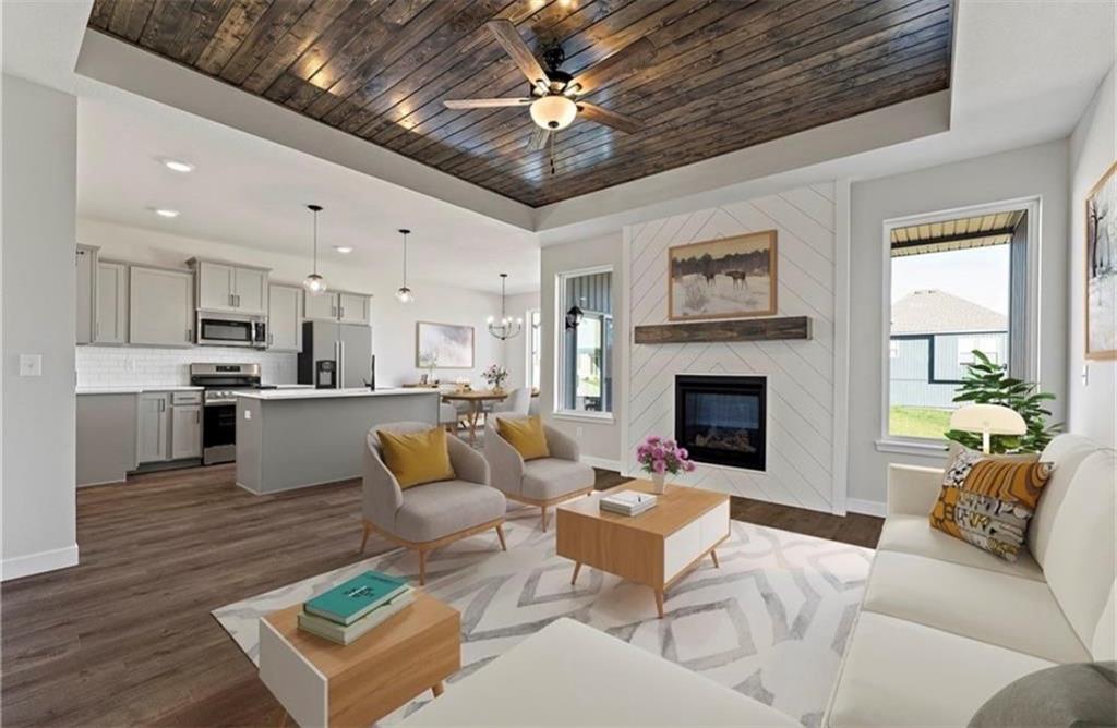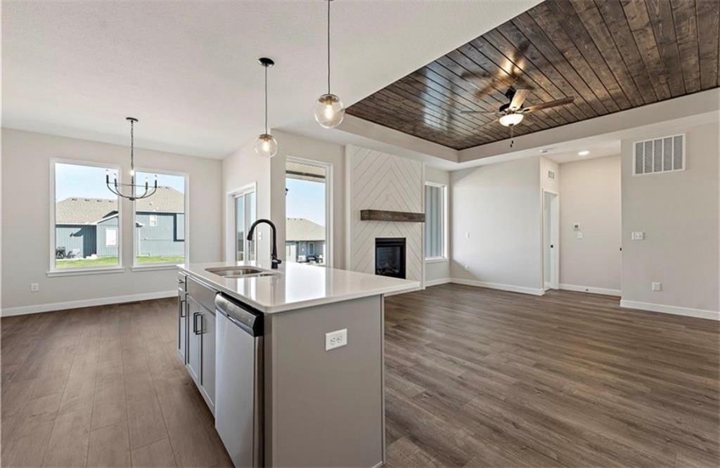 MOVE IN READY, MAY 2026. Welcome to The Kinley in Woodhaven! This spacious 3-bedroom, 2-bath ranch sits on one of the community’s premium lots, backing to beautiful greenspace and walking trails. Enjoy added privacy from your covered deck—perfect for relaxing or entertaining. The open-concept kitchen features quartz countertops, a large center island, walk-in pantry, and luxury vinyl plank flooring that flows throughout most of the main living areas. Bedrooms offer comfortable carpeting, creating a warm and inviting retreat. This home truly has it all with thoughtful design and quality finishes throughout. Woodhaven is one of the fastest-growing communities in Platte County, offering incredible future amenities including a pool, play area, walking trails, covered pavilion, and pickleball courts.