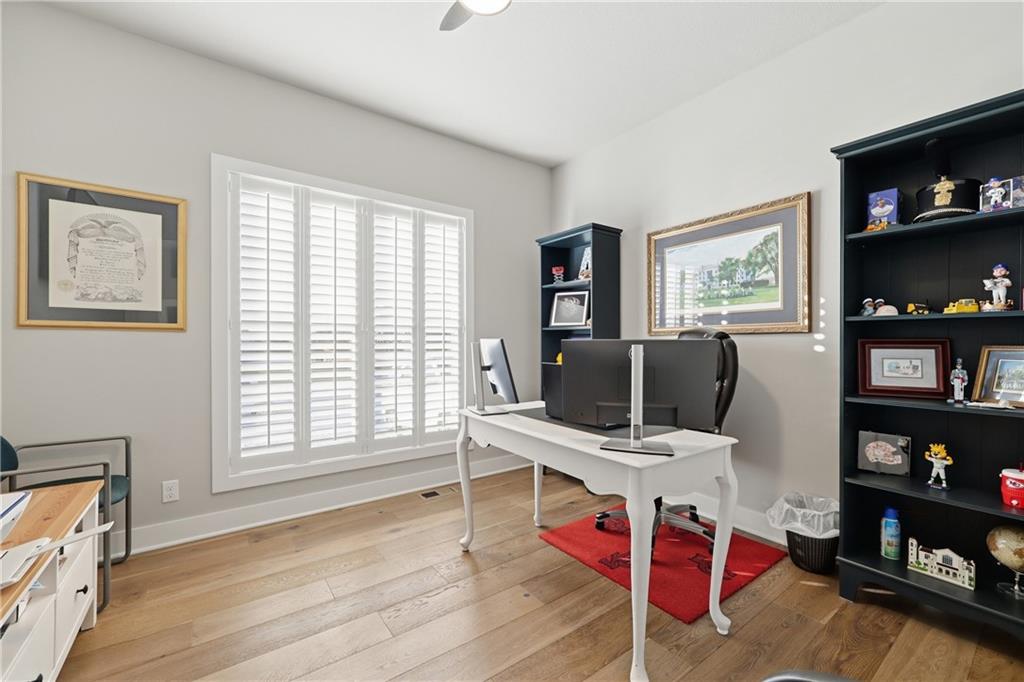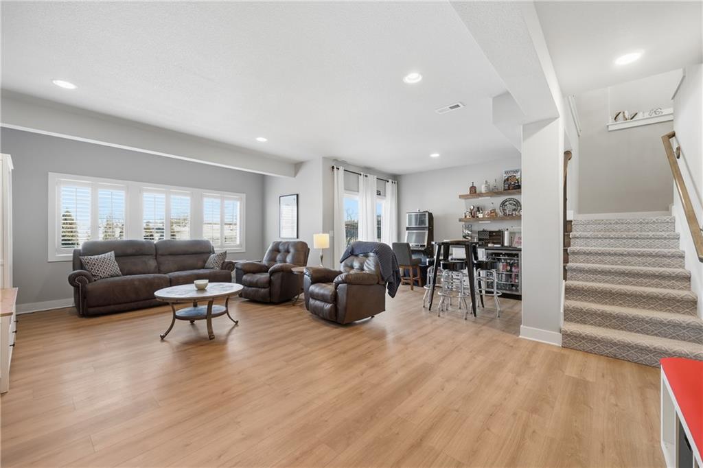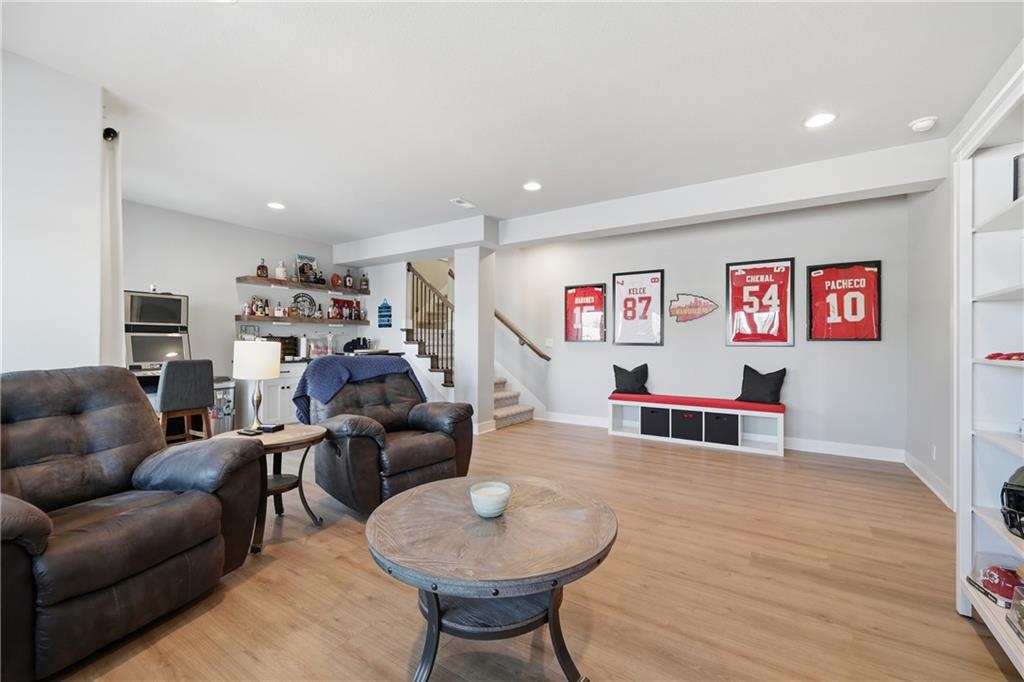 Come take a look at this charming ranch in the desirable and growing Hook Farms neighborhood, located within the highly sought-after Lee’s Summit School District! This beautifully designed 4-bedroom, 3-full-bath home offers an open, light-filled layout with custom plantation shutters throughout. The chef’s kitchen features granite countertops, stainless steel appliances, a gas stove, and a large island perfect for entertaining. Hardwood floors upstairs and luxury laminate flooring on the lower level provide style and durability. Relax in the inviting living space with a gas fireplace, gas heating, and a built-in humidifier for year-round comfort. The finished basement adds flexible living space, with an unfinished area ideal for extra storage. Enjoy outdoor living with a full irrigation system and access to the neighborhood pool. Move-in ready and located in an up-and-coming community—this home is a must-see!