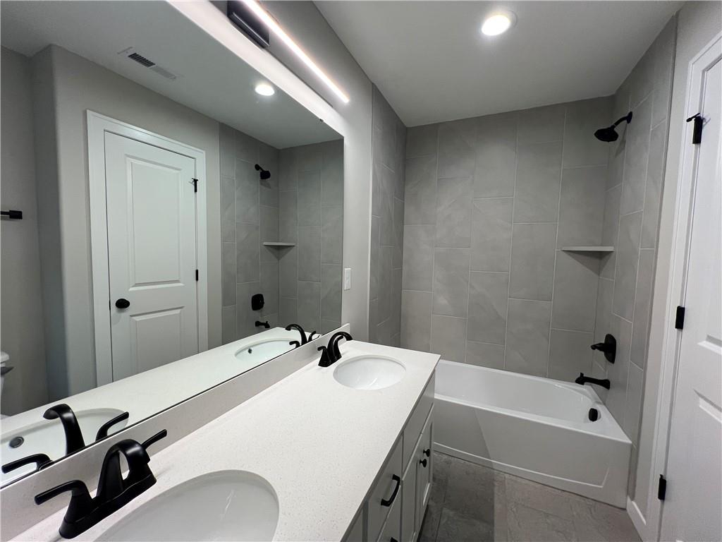 NEARING COMPLETION on this new version of the Wesley III with an added pocket office. Beautiful trim work throughout the home. Hardwood floors on the main floor, including the pocket office. Custom fireplace with built-in arch top shelves. Linear, heat-producing electric fireplace with remote. Trim accent wall in the dining room with modern arched doorways. Bull-nose sheetrock corners. Custom kitchen with the Estates cabinet package, which includes a built-in microwave cubbie with drawers below, a hood vent insert with ducting to the exterior, and a built-in trash drawer. Added backwall cabinet extension, Level 2 quartz on the island. A custom prep pantry with a stained prep area, a built-in magnet board, and a can stack. Custom floating desk and shelf in a pocket office. The secondary bedrooms all include the vaulted ceiling upgrade package and are wired for future ceiling fans. The laundry room includes custom shelving. The master bedroom includes a beautiful trim accent wall and LED color-changeable lighting in the vaulted tray ceiling. Master Bath includes a free-standing tub and an incredible custom shower. Quartz tops in all bathrooms and kitchen surround. Taxes and square footage are estimated. Less than 15 days to be move-in ready.