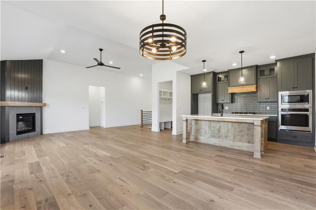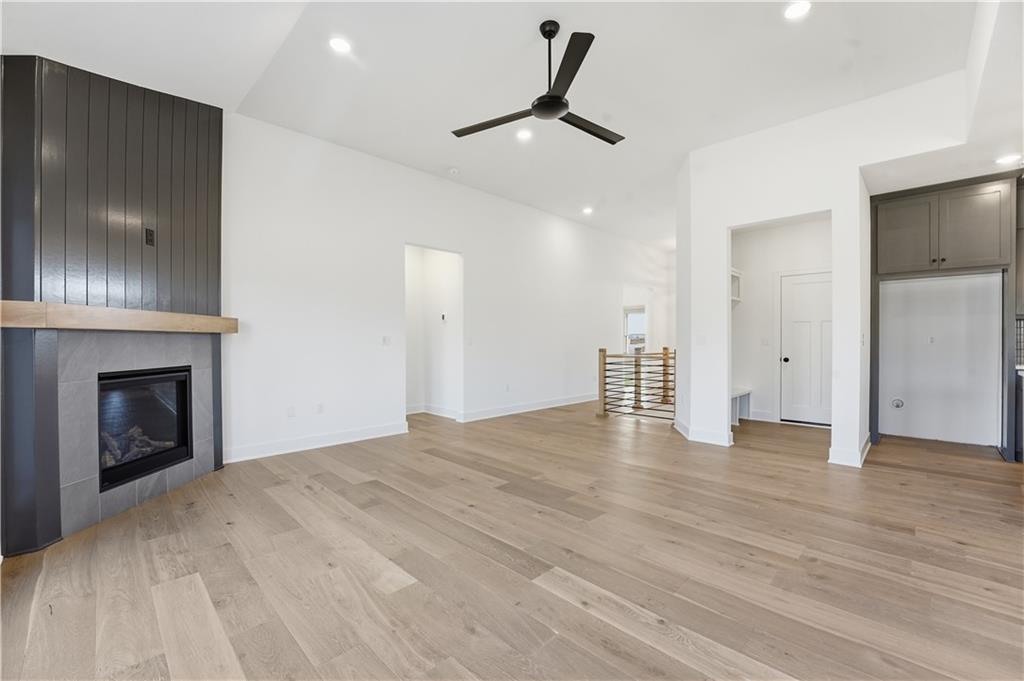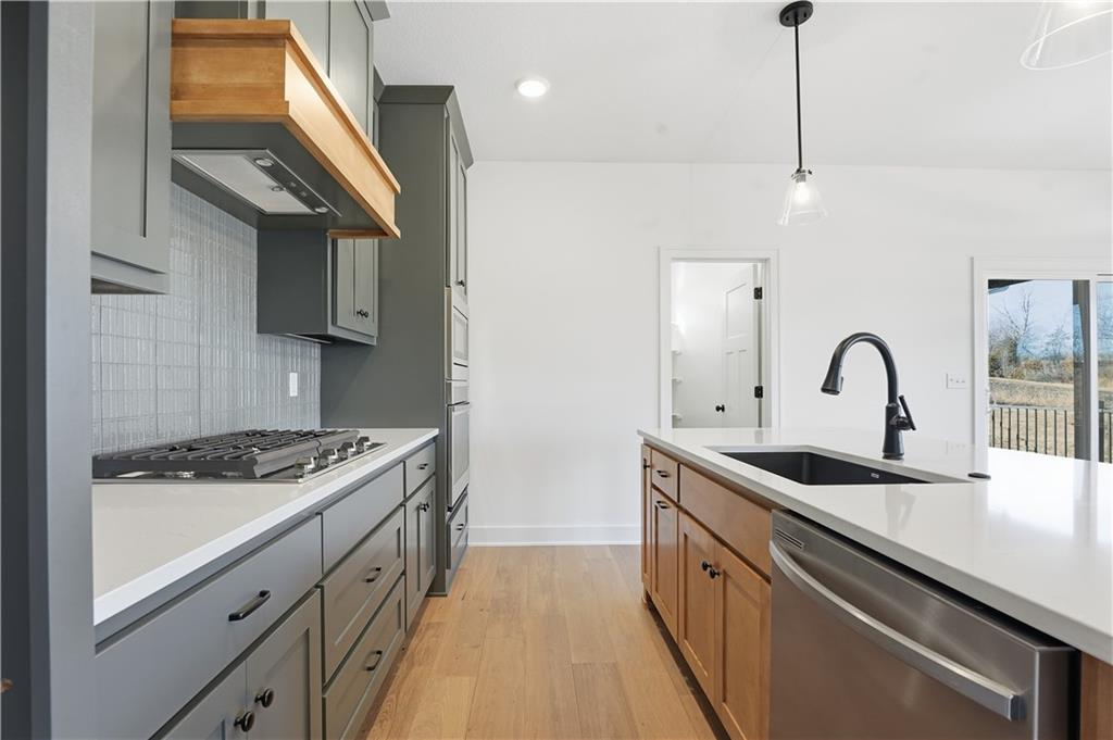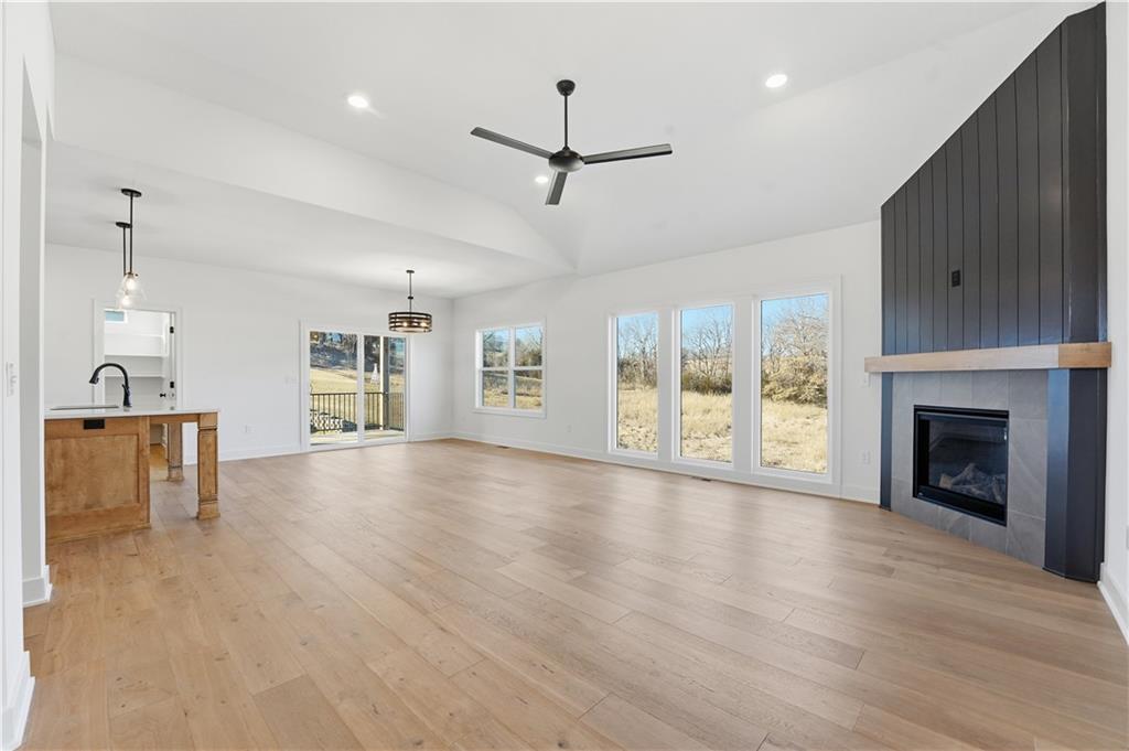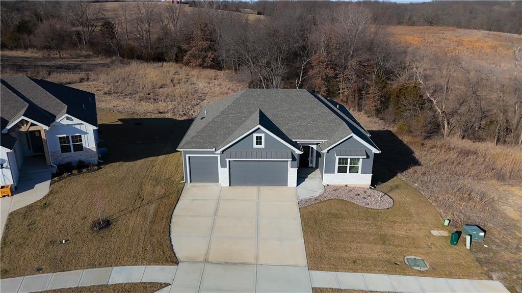This reverse ranch is exactly the bright, spacious home you've been looking for! Four bedroom and three bathrooms offer plenty of space. The open concept kitchen and living area is warmed up with dark cabinets, a large island, a cozy fireplace accent wall, and huge windows looking out at the beautiful, green backyard. The finished, walkout basement and covered patio make it easy to enjoy that backyard - and the three car garage means you have plenty of space for your vehicles and toys. Come see it soon.