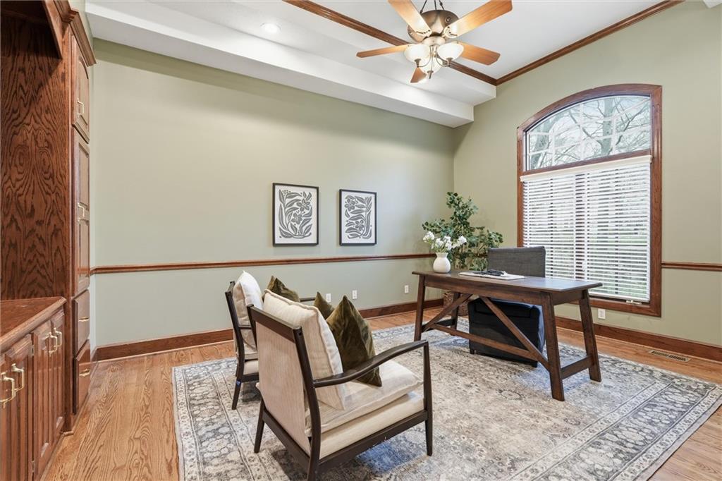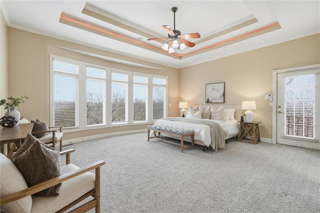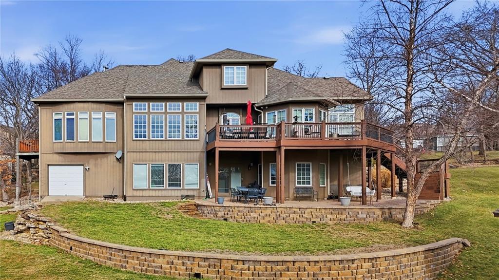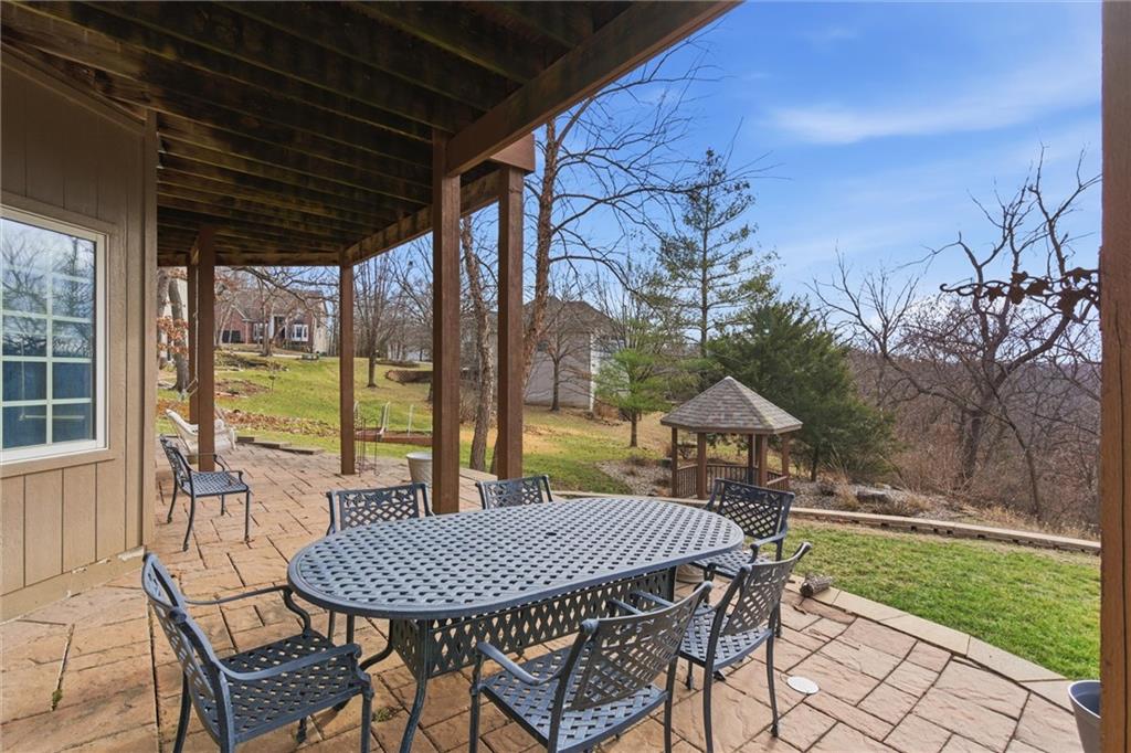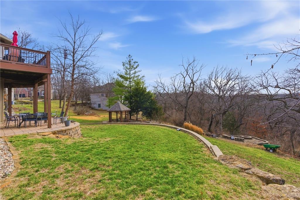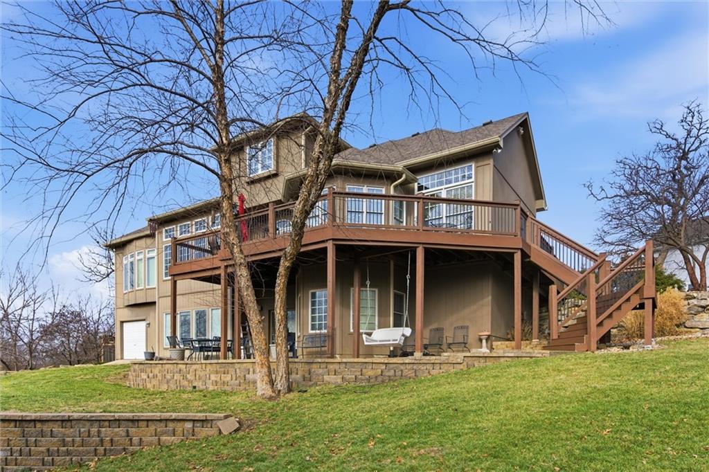 Tucked onto an extraordinary 37,000+ square foot lot and backing to sweeping, private views, this custom-built Kansas City home is a rare blend of scale, craftsmanship, and setting. Lovingly maintained and updated by its original owners since 2000, this 4-bedroom, 4.5-bath residence offers nearly 5,800 square feet of beautifully designed living space. Soaring ceilings and expansive windows fill the home with natural light, creating an airy, inviting feel throughout. Every room was thoughtfully designed for both everyday comfort and elegant entertaining. The main level features a dedicated office, spacious laundry/mudroom, and seamless flow between living spaces. Upstairs and down, the layout offers generous bedroom suites and exceptional flexibility. Car enthusiasts, hobbyists, and anyone who appreciates storage will love the 4-car garage plus a rare 5th garage in the walk-out lower level with direct access to the backyard — perfect for lawn equipment, a workshop, or additional vehicle storage. The meticulously landscaped grounds feel like a private retreat, with mature plantings and expansive outdoor space that is nearly impossible to find at this scale. DON'T MISS the fact that this home features a Kansas City, Missouri address, but is assigned to Lee's Summit schools. Homes like this — custom built, beautifully cared for, and perfectly positioned — don’t come along often.