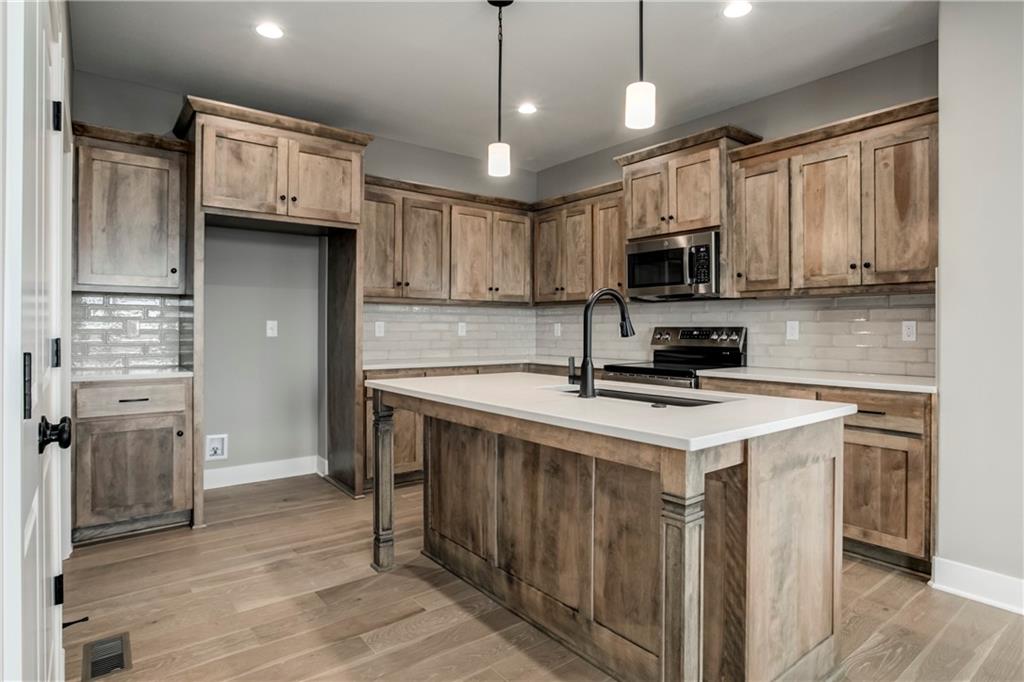 NEW LAYOUT of the Everly Plan by Martens Family Enterprises, Inc. Expansive covered the front porch, and a covered patio in the back by the garage. Hardwoods in the great room, kitchen, dining, and mudroom. Main level living includes the master bedroom on the main level. Custom Accoustic inlay trim wall to give that perfect finish to the master bedroom. The master bathroom includes a large shower, a free-standing tub, separate vanities, and a large closet with a private laundry area in the master closet. Built-in custom bootbench, stained kitchen cabinets, upgraded backsplash, matte black plumbing upgrades throughout. Full-height stone fireplace with electric fireplace insert. The second floor includes a loft space with a closet, 3 spacious bedrooms, and now two baths upstairs with a separate laundry area for the second level. Large bedrooms. Expanded driveway width to allow for additional back porch/patio space. A separate door from the back porch to the garage, high-lifted garage door tracks to allow more space. The garage includes a garage door opener with a keypad. Also included are buried gutter downspouts and sump pump discharge upgrades. 2-inch faux wood blinds are STANDARD in most areas. Taxes and Sq ft are estimated. HOA INCLUDES: lawn mowing, All 4 Stonebridge Pools and 2 clubhouses, gym access, sports courts, sprinkler activation/winterization, and snow removal (some restrictions apply). Taxes and sqft are estimated. 1 virtually staged photo.