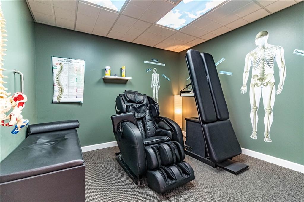Excellent Opportunity to own a spacious, 3600 sq ft, well maintained, commercial building located in a high traffic area. This property is currently being used as a successful, thriving, chiropractic clinic and there is the option to purchase the business and assets in addition to the building. Clinic offers 7 treatment rooms, 2 offices, 3 restrooms, kitchen, laundry, conference room, 2 storage rooms, 2 reception areas and a waiting room. One of the bathrooms includes a shower and is a private bathroom located off an office. This property is zoned general business so its suitable for office space, restaurant, retail, or other service-based business... options are endless. Features ample parking/detached 1 car garage could be used for additional storage/3 HVAC units/High-end siding/Beautiful Signage/ This building is set up in a way that the back portion could be rented out for additional income or expand the existing practice.