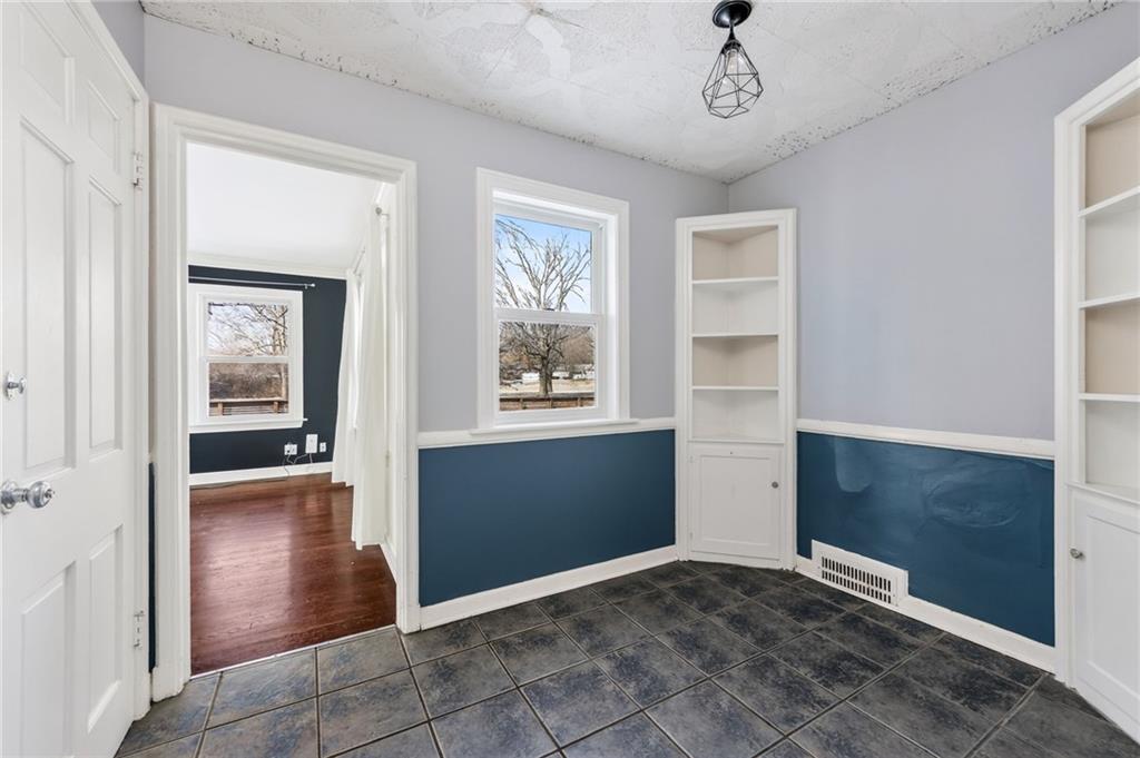 This charming 2-story home built in 1940 exudes character, blending historic details with thoughtful modern updates. The inviting, picturesque front porch welcomes you into a spacious family room filled with natural light, featuring a wood-burning fireplace, built-in bookshelves, and access to an enclosed side porch. A large formal dining room offers the perfect setting for gatherings, while the updated kitchen impresses with granite countertops, stainless steel appliances, soft-close cabinets and drawers, and a pantry. A cozy eat-in breakfast nook with built-ins adds even more charm. Gorgeous hardwood flooring, textured ceilings, and updated light fixtures run throughout. The primary bedroom features double closets, a full bath, and access to the roof deck. Secondary bedrooms are generous in size with ample closet space. The finished lower level offers a fun, spacious rec room complete with a wet bar and built-ins—ideal for entertaining or relaxing. Enjoy outdoor living in the manicured, fenced backyard with a patio and stone paver walkway. The expanded 2-car garage provides extra space, plus there’s an extra-wide private driveway. Major updates include roof, furnace, hot water heater, Hardie Board siding, Andersen thermal windows, and more. Prime location with convenient access to The Country Club Plaza, Brookside, and all the amenities you love. Don’t miss this one—it’s full of charm, space, and style!