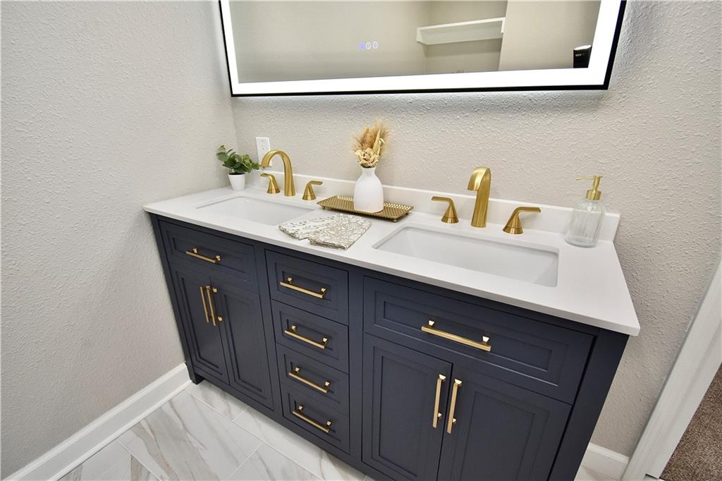 Complete renovated Reverse 1.5 Story offering main level living, spa-like primary suite, and finished walk-out basement on nearly half an acre! If you have viewed this one before, STAY!! Seller took property off market & completed enhancements you will love!! This home also offers main level living with 3 bedrooms and 3 full bathrooms on the MAIN FLOOR—a RARE find. The redesigned primary suite includes a spa-like bathroom, double vanity, LED backlit mirror, walk-in tiled shower, freestanding soaking tub, custom built-ins, and a large walk-in closet. Additionally seller replace LVP flooring on the main level with hybrid wood flooring, and new carpet in bedrooms. The fully remodeled kitchen features new cabinetry, quartz countertops, large island w/cooktop, double oven, pantry, abundance of counter space especially for entertaining! Open concept living room/hearth room with fireplace, abundant natural light, and modern finishes throughout. All new interior doors, trim, hardware, lighting, and ceiling fans. Finished walk-out basement expands living space large rec room, wet bar, second fireplace, additional bedroom, full bathroom, & walk-in laundry room with built-ins. Unique hidden room behind built-in bookcase adds flexible bonus space! Exterior features - covered patio, new deck, nearly ½ acre lot, and partial privacy fence. Major updates: new roof, new garage door, new driveway, fresh interior & exterior paint. This beautiful modern home is Turnkey/ Move-in ready. Prime location w/quick highway access, aprox 15 minutes to downtown, 30 mins to KCI Airport, 20 minutes to Chiefs/Royals Stadium. Close to OP shopping & dining. Shawnee Mission School District. HIGHLIGHTS INCLUDE- Complete Interior Renovation- Turnkey Ready- Reverse 1.5 Story- Main Level w/3 Bedrooms & 3 Full Bathrooms- Primary En-Suite- Finished Walk-Out Basement, Wet Bar- New Garage Door, Driveway, Partial Fence- New Roof- Great Location-Easy Commute!