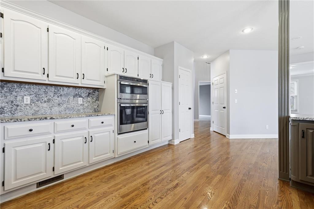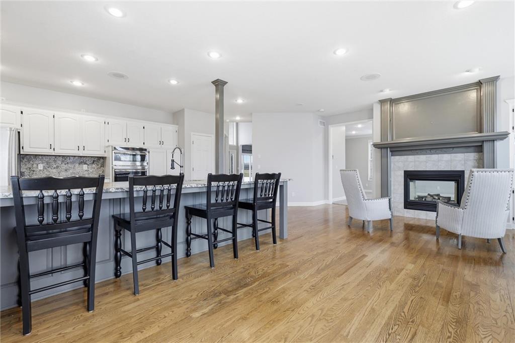 Experience refined living in this two-story home perfectly positioned at Country Creek Estates overlooking the 4th fairway of The Rock and facing the 4th fairway of Hoots Hollow. With 4 spacious bedrooms, 4 full baths, and 1 half bath, this residence offers an exceptional blend of luxury, comfort, and functionality. The main level welcomes you with a grand entryway leading to a formal dining room and an inviting living area featuring a see-through fireplace shared with the cozy hearth room. The kitchen offers updated finishes, abundant cabinetry, and a seamless flow into the hearth room—ideal for entertaining. A dedicated office provides a quiet workspace, while a versatile flex room downstairs offers endless possibilities for a playroom, gym, or hobby space. The primary suite is a private retreat with its own fireplace, ensuite bath, and generous walk-in closet. Bedroom 2 has a private bath while bedroom 3 and 4 share a Jack-n-Jill bath. The walkout basement is designed for entertaining, complete with a wet bar, open recreation area, full bathroom and direct access to the backyard overlooking the fairway. A three-car garage provides ample space for vehicles and storage. Located in the Pleasant Hill school district and minutes to Pleasant Hill, Harrisonville, Lee's Summit and Raymore for shopping and dining while maintaing a country feel.