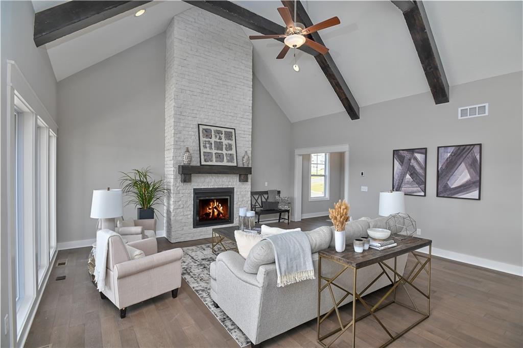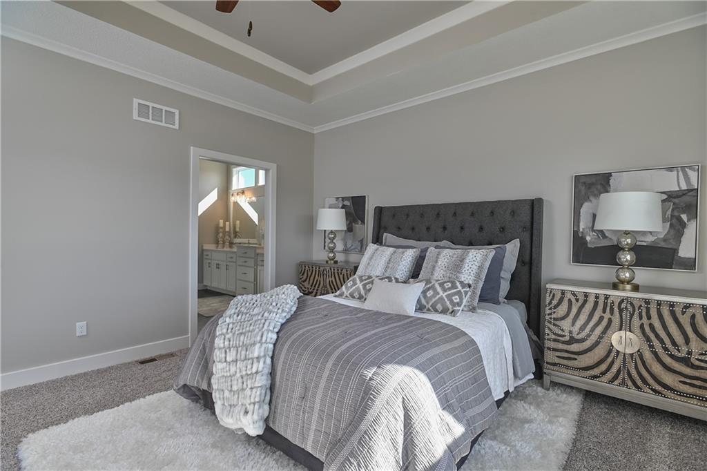 This home is perfectly situated at the end of a quiet cul-de-sac, adjacent to a public golf course. The stunning Reverse 1.5-Story Aspen by Prieb Homes offers a spacious, open floor plan filled with impressive details throughout. Soaring vaulted ceilings with stained beams and striking stonework surrounding the fireplace create a grand first impression upon entry. The kitchen is designed for both entertaining and everyday living, featuring a massive granite center island and ample workspace. The primary suite serves as a relaxing retreat, complete with an adjacent bonus office space and a conveniently located laundry room with built-in cabinetry. The spa-like primary bath includes a custom shower and separate vanities. The finished lower level expands the living space with a wet bar, two additional bedrooms, and a full bathroom—perfect for guests or recreation. Step outside to the large covered 14x12 deck and enjoy peaceful views. Room sizes and taxes are estimated, and some features may not be available in this spec home. Buyer’s agent to verify all information. Some Pictures are of completed plan, decor selections and front elevation orientation to vary.