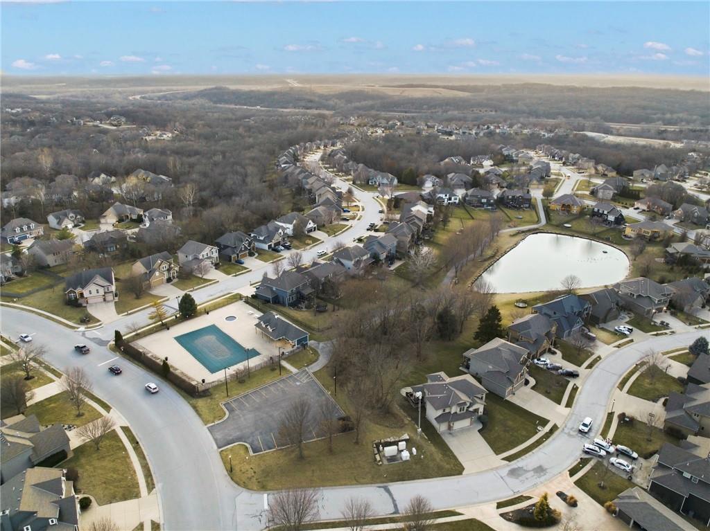 Welcome to this stunning former model home in the sought-after Thousand Oaks subdivision. Crafted by Shawn Land Builders & meticulously maintained by the original owners for nearly 20 years, this refined 4-bedroom, 4.5-bath residence offers just under 4300 sq. ft. of brilliantly designed space. Its oversized lot at the end of a cul-de-sac backs to protected green space, with mature trees surrounding the backyard to provide privacy and a serene setting. From the grand two-story foyer to the expansive lower level primed for entertaining, every detail reflects exceptional living. Highlights include a stylish office, a formal dining room, and a gorgeous living room complemented by a gas fireplace with a stone facade, built-ins, and picturesque windows framing serene views. The kitchen is beautifully appointed with a substantial island, granite countertops, custom cabinetry, GE appliances, a walk-in pantry, & a bright breakfast room. Just beyond, a covered deck becomes an inviting spot for coffee or to unwind with dinner and drinks. Upstairs, the primary suite impresses with double-tray ceilings, a spa-like bath with a jetted tub & shower, & a giant walk-in closet. One secondary bedroom has a private ensuite, while the other two share a Jack-and-Jill bath. Downstairs is an entertainer’s dream, featuring a full wet bar with beverage cooler and fridge hookup, microwave, dishwasher, a huge recreational area, 2 bonus rooms, full bath & storage. Outside, a sensational stone patio, bench, and wood-burning fire pit await quiet evenings under the stars. A 3-car garage has an organization system and a utility sink. Plus, a brand-new roof & 1-year Home Warranty adds peace of mind. Neighborhood amenities encompass scenic lakes, trails, pools, clubhouse, playgrounds, tennis courts, a swim team & social events. With luxury, comfort, and a prime location near Parkville’s shops, dining, entertainment, and top-rated Park Hill schools, this designer home has it all!