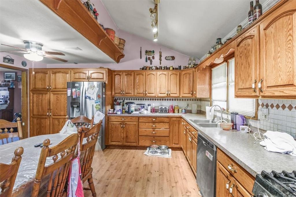 Enjoy the best of country living on 8.75 acres just minutes from the city! Located off F Highway in unincorporated Jackson County, this property offers privacy, flexibility, and tons of potential. The home features a spacious eat-in kitchen with abundant cabinetry and all appliances staying, plus room for formal dining. The bright living room opens to a charming sunroom, perfect for natural light and plants and includes a walk in soaker tub. The main level includes two large bedrooms and a generously sized bathroom. Upstairs offers space to create two additional rooms. Outside, you’ll find a detached garage already set up with separate living quarters, including a kitchen area and full bath... ideal for guests or rental potential. The commercial-grade walk-in freezer stays! Enjoy the large upper deck, charming old barn, additional outbuilding, home generator, and even a horseshoe area for entertaining. Just needs your vision!