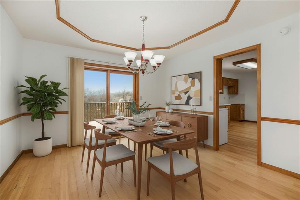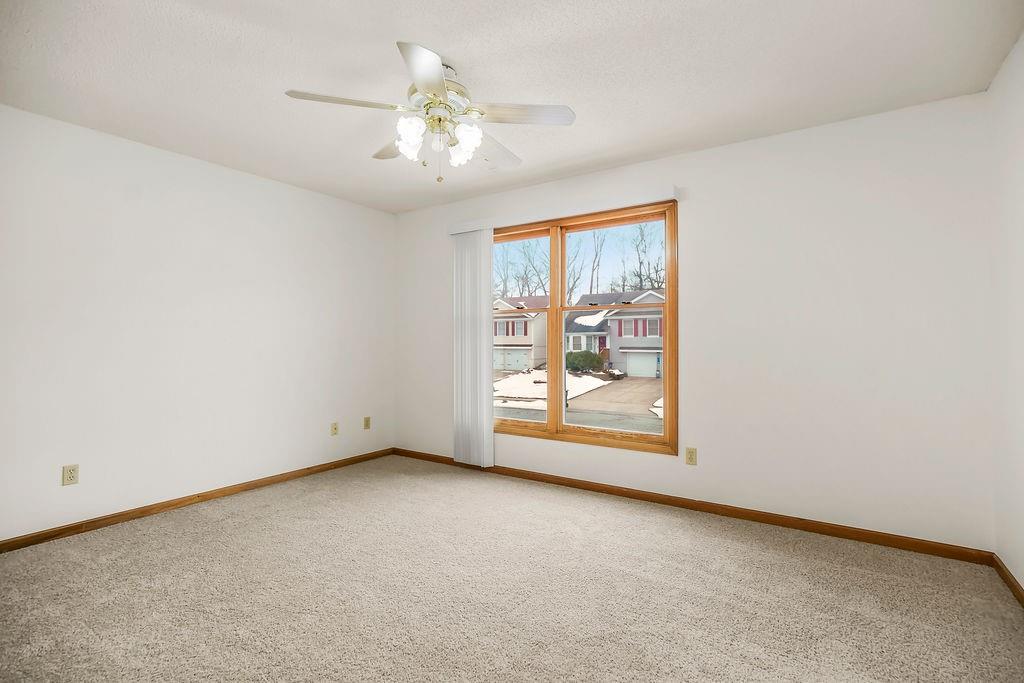 This well maintained 3 bedroom, 3.5 bath two story home is a BLANK SLATE, featuring a brand new roof, fresh interior paint, newer main level flooring, and newer carpet throughout. The layout offers both everyday functionality and flexible living space. The main level includes a formal dining room with direct access to the back deck, creating an easy indoor-outdoor flow. The kitchen offers epoxied countertops, ample cabinet storage, and convenient access to the half bath and laundry room. Upstairs, all three bedrooms are on one level. The spacious primary suite features a vaulted tray ceiling, private martini balcony, walk in closet, and en suite bath with tile flooring, jetted tub, skylight, and vaulted ceiling. Two additional bedrooms with large closets share a full hall bath with tile flooring and a tub and shower combination. The finished walk out basement adds valuable living space with tall ceilings, tiled floors, a gas fireplace, and a full bath with a walk in shower, ideal for a second living area, guest space, or home office. Outdoor highlights include a fully fenced backyard, a front porch, and a deck. With newer mechanicals, vinyl siding, and convenient access to highways, shopping, dining, parks, and schools, this home is a must see!