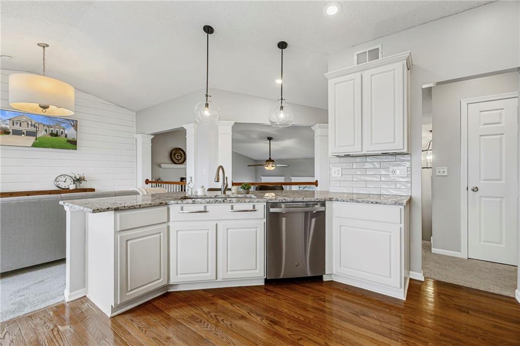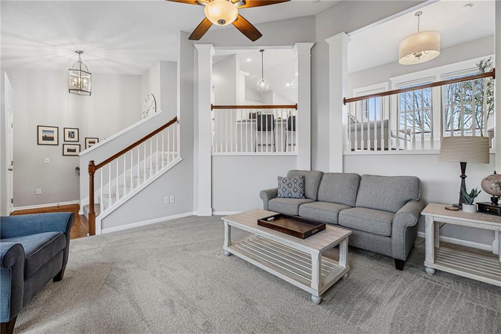 This stunning 3-bedroom, 2.5-bath split-level home is truly move-in ready and shows like new. Thoughtfully updated, it blends modern finishes with functional living spaces—inside and out. The heart of the home is the fully updated kitchen, featuring granite countertops and sink, double ovens, pendant lighting, and updated dinette lighting—perfect for everyday living and entertaining. Throughout the home, you’ll find craftsman-style window trim, added windows that flood the space with natural light, and tasteful details such as shiplap accents in the hearth room/dining area. The fireplace is a showstopper, wrapped in stone all the way to the ceiling. Brand-new carpet (2026) adds a fresh, comfortable feel throughout the main living spaces. The finished basement offers exceptional versatility, featuring a wet bar complete with a beer tap tower and refrigerator, a convenient half bath, surround sound wiring, and a dedicated office or bonus space. Outdoor living is just as impressive. Enjoy two distinct outdoor spaces, including a covered patio with lighting and a newly stained deck and fence. The landscaped yard includes a full sprinkler system and an in-ground basketball goal, making it perfect for both relaxation and play. Major updates provide peace of mind, including new energy-efficient windows with transferable warranty (2023), enlarged 70-gallon hot water heater (2023), lifted driveway with transferable warranty (2023), a roof replacement with updated venting (2015), and updated bathrooms—including a refreshed kids’ bath with added window and new tile in the primary bath. Fresh exterior paint (2018) and numerous smart WiFi switches throughout the home add both curb appeal and modern convenience. This home is a rare find—beautifully maintained and ready for its next owner to enjoy.
