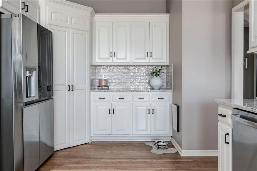 Gorgeous Move-in Ready home that boasts 5 Bedrooms, 4 1/2 baths, a fabulous, finished basement w/office and full bath, upstairs laundry, a primary Bedroom with sitting room, plus 5th bedroom/office with full bathroom on main level. Well maintained. Newly remodeled kitchen with granite, tile backsplash, and stainless appliances. Large breakfast area bay opens to great room, plus a formal dining room. Lots of living space in this spacious home with two separate living areas that include a large living room with beautiful fireplace, and a good sized lower-level family room with a separate room that could be used for an office. Lots of storage area in this beautiful home. Large, fenced back yard ready for family fun in a Cul-de-sac lot. The subdivision offers walking trails, lake, pool, clubhouse and playground area. Located close to schools, shopping, and restaurants. Great opportunity to own this beautiful spacious family home at a great price! Hurry won't last long!