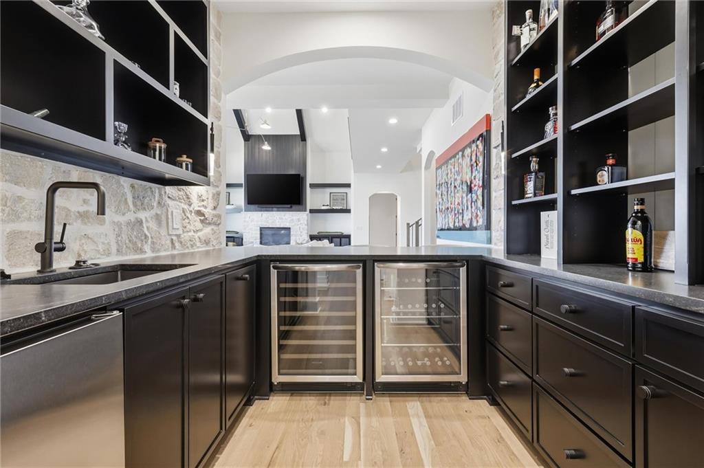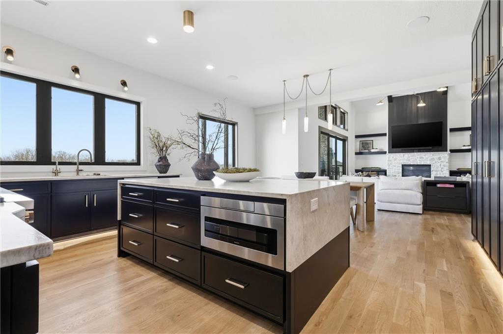 AMAZING NEW 1 ½ story Estate home in highly desired Estates at Chapel Ridge on 1.14 acres! Park Hill School District ! Everything you would want for luxury and style with attention to detail! This 5 bedroom / 5 1/2 bath contemporary home has a 4 car garage with additional #5 in the lower level! Incredible entry features 8' metal pivot front door ! Wood floors thru out the main level. 2nd bedroom suite currently an office which transcends you toward the towering great room with beamed ceilings and fireplace which is a work of art with stylish shelving to showcase your artwork and keepsakes! Upgraded sliding door to the covered deck and fireplace w/ an entertainment area to watch your favorite sports team! Custom designed stairs to the large flat backyard and patio. Gourmet kitchen has quartz countertops and waterfall edge on the oversized island. Cabinet space galore! Side by side refrigerator / freezer, 6 burner range & double oven, in-drawer microwave, farm sink w/ instant hot water. The back pantry has double refrigerator drawers with plentiful shelving, sink and coffee bar space. Enjoy the main level wet bar with ice maker, double wine / beverage refrigerators and perfect entertaining space. Primary Suite is a place to relax in front of the linear fireplace and spa like bath with heated tile floors, double vanity, soaking tub and spacious walk-in shower. You will love the incredibly designed primary closet with its own laundry, special lighting and pull down racks. 2nd floor has 3 ensuites + 2nd office & 2nd laundry. Walk out unfinished Lower level has so much potential to design your own golf simulator space, 6th bedroom suite ...whatever you need ! Excavated area under the NE 2 car garage with an addition garage door to allow access for golf cart storage! The entire 1.14 acres have sprinkler system and sodded. Over the top landscaping ! 3 HVAC systems ...there are so many incredible extras in this home ... have to see it to capture the beauty and decor !
