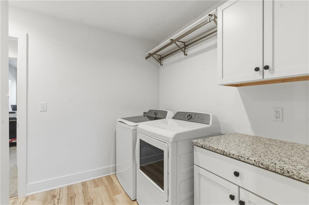 Better than new construction — this stunning 3-year-old townhome offers all the benefits of new build without the wait. A dramatic two-story entry welcomes you with designer iron spindle staircase and curated light fixtures. The open main floor flows seamlessly from the chef's kitchen to dining and living, perfect for entertaining. The kitchen features a large island, walk-in pantry, stainless steel appliances, designer backsplash, and updated hardware. Commercial-grade luxury vinyl plank flooring, matte black hardware, and granite countertops throughout give this home a cohesive, high-end feel. The primary suite is a true retreat with floor-to-ceiling tiled shower, double vanities, under-mount sinks, and an oversized walk-in closet connected directly to the laundry room. The large unfinished basement offers endless storage and is ready for your future vision. Outside, enjoy a brand new deck, a spacious treed backyard, and a park with playground and picnic area right across the street. Easy access to I-35 and I-635 makes for a smooth commute anywhere in the metro.