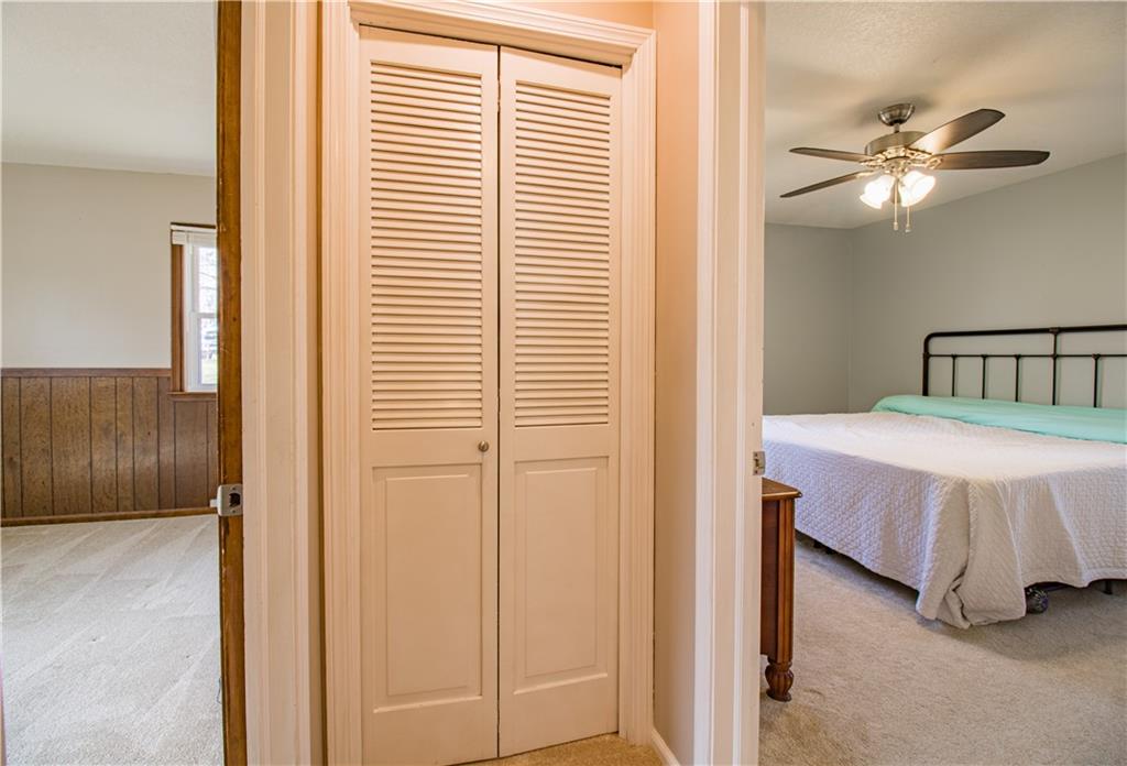 Enjoy the private and scenic feel while having centrally located convenience! This beautiful brick front home is nestled on a large treed lot that offers charm with modern updates. You will enjoy cozy nights around the brick fireplace located in the spacious living room on the main level. The semi-open floor plan is perfect for hosting and entertaining in the substantially sized kitchen and dining area. The kitchen includes beautiful wood cabinets, granite countertops, a kitchen island, stainless steel appliances including a double oven, and more cabinet space than you could need. The sizeable primary bedroom features a bump-out with a large window for plenty of natural light. The primary bedroom is equipped with an ensuite bathroom with ample space, a generously sized vanity, large stand up glass shower with beautiful tile, whirlpool bathtub and spacious walk-in closet. The finished basement offers a family room with another brick fireplace, a bedroom, full bathroom, unfinished storage space, and garage access. The fenced-in backyard provides a picturesque scenery and is perfect for pets.