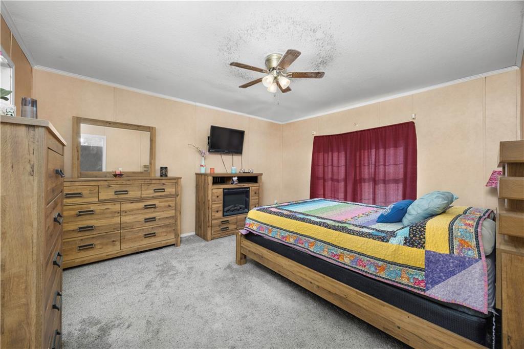 Sometimes all you really want is space, a good view, and a little peace and quiet. This 3-bedroom, 2-bath manufactured home sits on 27± fenced acres just west of Coffeyville with easy access to Hwy 166. The home offers a functional layout for easy living. In the living room you will find a wood-burning fireplace for cold winter nights. The eat-in kitchen has a small island with storage underneath. The primary bedroom has an en suite bathroom featuring a stall shower and jacuzzi tub- perfect for soaking the stress away. The land is fully fenced with a cattle guard by the house and chain-link fencing in the backyard, making it ideal for livestock or pets. A two-car carport and storage shed provide added convenience. The pond is the standout feature—perfect for fishing, relaxing, and enjoying quiet country evenings. The home does need some updates, including hail-damaged siding on the west side and carpet replacement, offering buyers an opportunity to update and add value. A deck in the backyard is ready for repair and personalization. This property offers open pasture, scenic views, and peaceful country living with close proximity to town. Call to schedule a tour today!