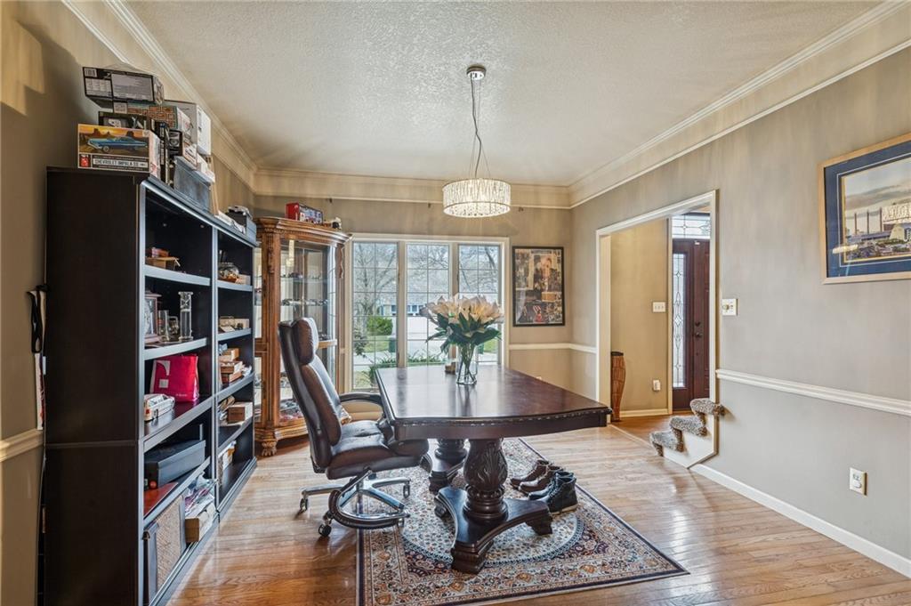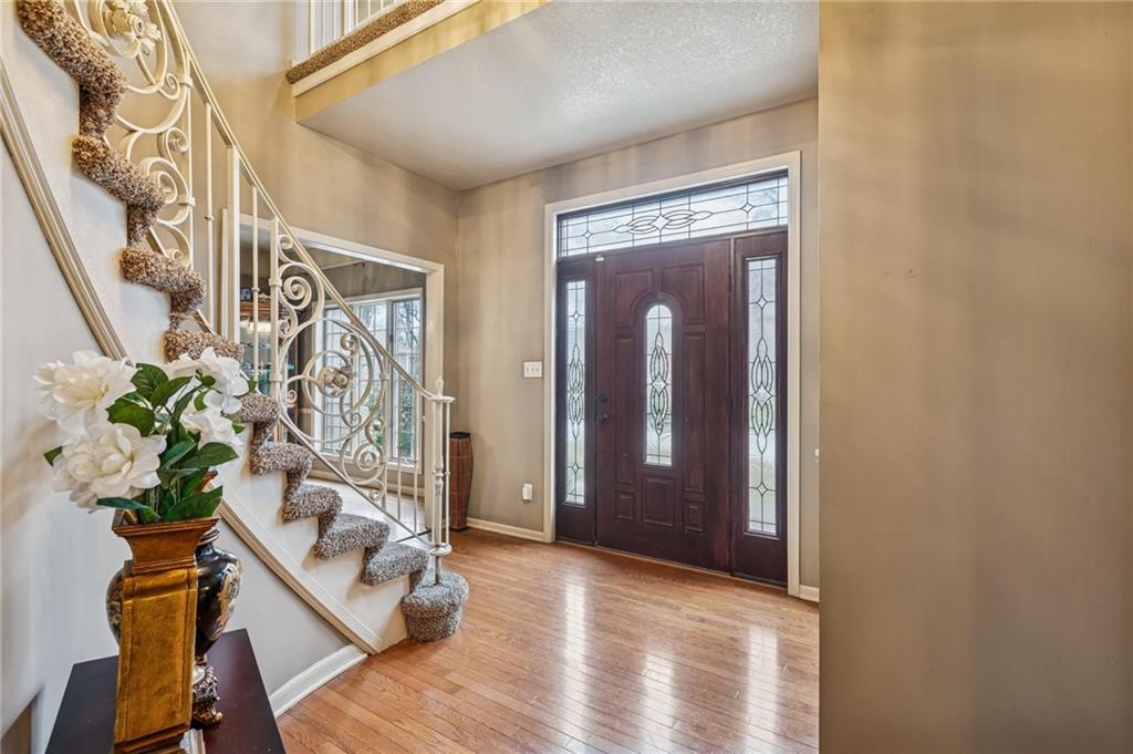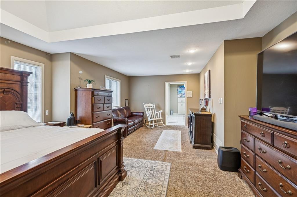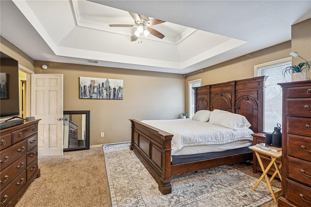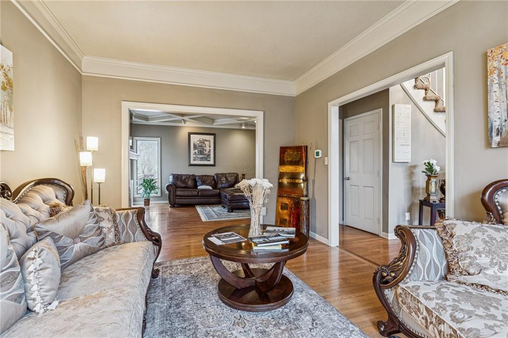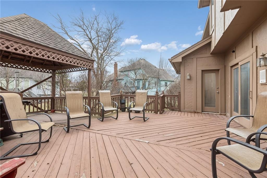 Step into exceptional scale and style with this impressive 4-bedroom two-story home that delivers space, character, and versatility at every turn. A striking grand entry sets the tone, welcoming you into formal living and dining spaces featuring hardwood floors, crown molding, large windows and an elegant, flowing layout. The main living room is a true showstopper with coffered ceiling detail, a beautiful stone fireplace, and wood floors opening to the kitchen with granite countertops, ample cabinetry, double ovens, a custom pantry and an eat-in area with a tray ceiling. An adjacent room provides flexibility for a formal dining area or home office. The oversized primary suite feels like a private retreat, complete with a sitting area and spacious en-suite bath offering double vanities, a soaking tub, and separate shower. Three additional bedrooms are located upstairs, while a finished room on the lower level offers the perfect space for a home office, exercise room or storage. The expansive walk-out lower level is an entertainer’s dream, featuring a second fireplace, large recreation area, and wet bar with plenty of room for a media space, game area, and lounge. Step outside to enjoy multiple outdoor living spaces, including a patio, elevated deck accessible from the main living area and kitchen, and covered gazebo overlooking the backyard perfect for outdoor living and summer evenings. Experience a home that combines generous square footage, timeless details, and flexible living spaces, ready to be enjoyed for years to come.