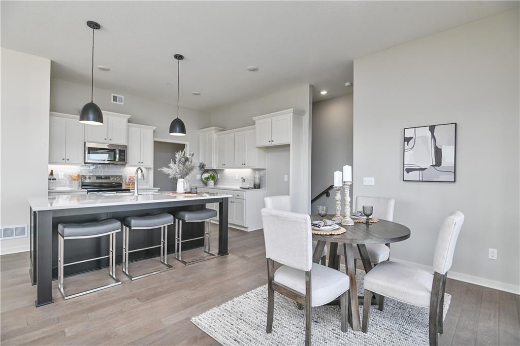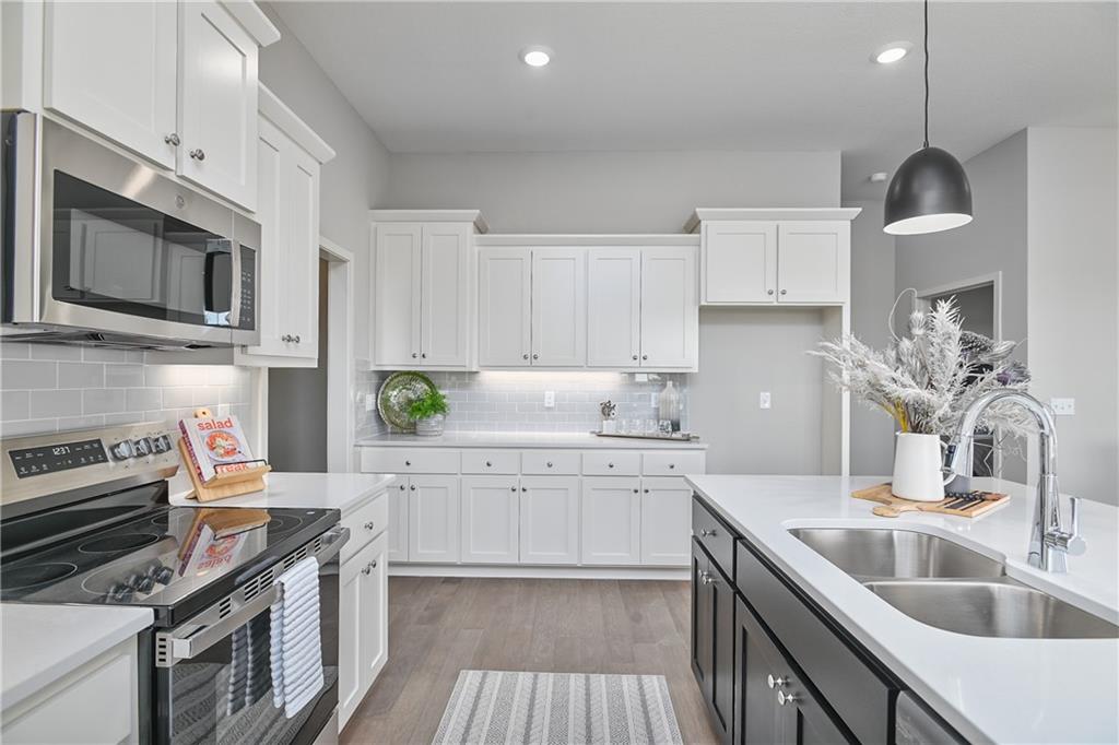10,000 BUILDER INCENTIVE to be used as buyers choice of upgrades, closing costs, decor, etc!!! Must be under contract by 03/01/2026 Move-in Ready Maintenance Provided Ranch Villa! This stunning home features an open floor plan with 10’ ceilings, hardwood floors, and a light-filled living room with stone fireplace. The gourmet kitchen includes stainless steel appliances, custom cabinetry, under-cabinet lighting, and a walk-in pantry, plus a main-level mudroom and built-in desk area. The primary suite offers a walk-in closet and beautifully tiled bath. The lower level adds a spacious rec room with dry bar, two additional bedrooms, and a full bath—totaling four bedrooms. Lawn care, snow removal, and exterior maintenance (including roof) are all included