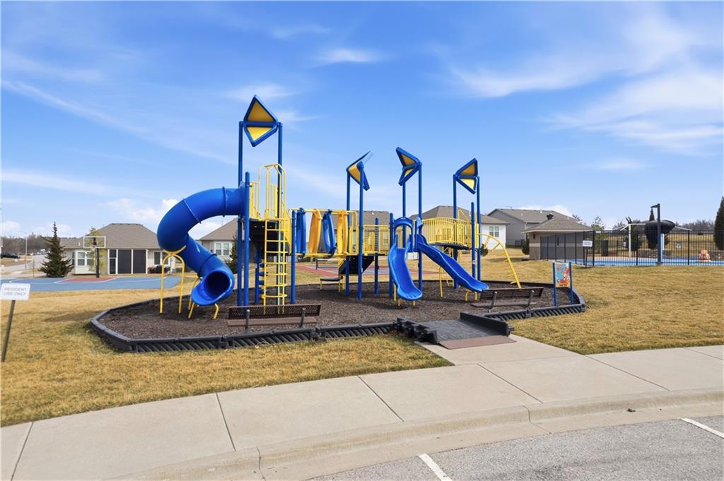 Enjoy the most gorgeous Kansas sunsets from your back deck at this beautiful and like new reverse ranch "Wheeler" plan, with so much natural light and space for everyone. Built just 3 years ago, this home welcomes you in, with a main floor office/guest suite, mudroom and laundry room, and oversized 3 car garage. Primary suite overlooks green space, complete with a massive ensuite providing a soaker tub, walk-in shower, and wonderful storage. Kitchen built to host, with spacious pantry, beautiful island, and dining space. The basement has barely been used - providing 2 bedrooms each with walk-in closets, a living space, and room for games. Upgrades throughout - and pride of ownership shows. Home sits across the street from award winning elementary school, and neighborhood provides such amenities like fitness center, sport courts, splash pad, park and pool! Totally turnkey with all the upgrades.