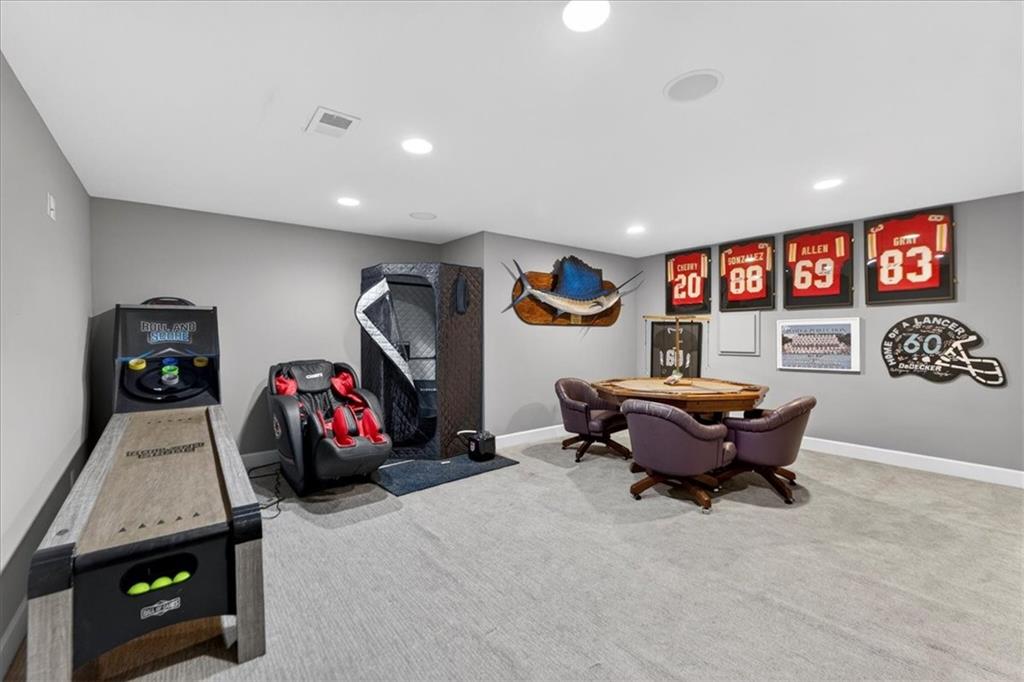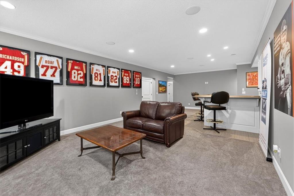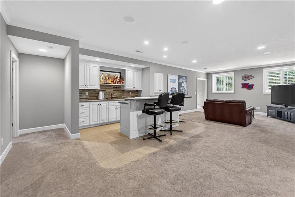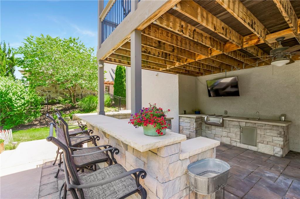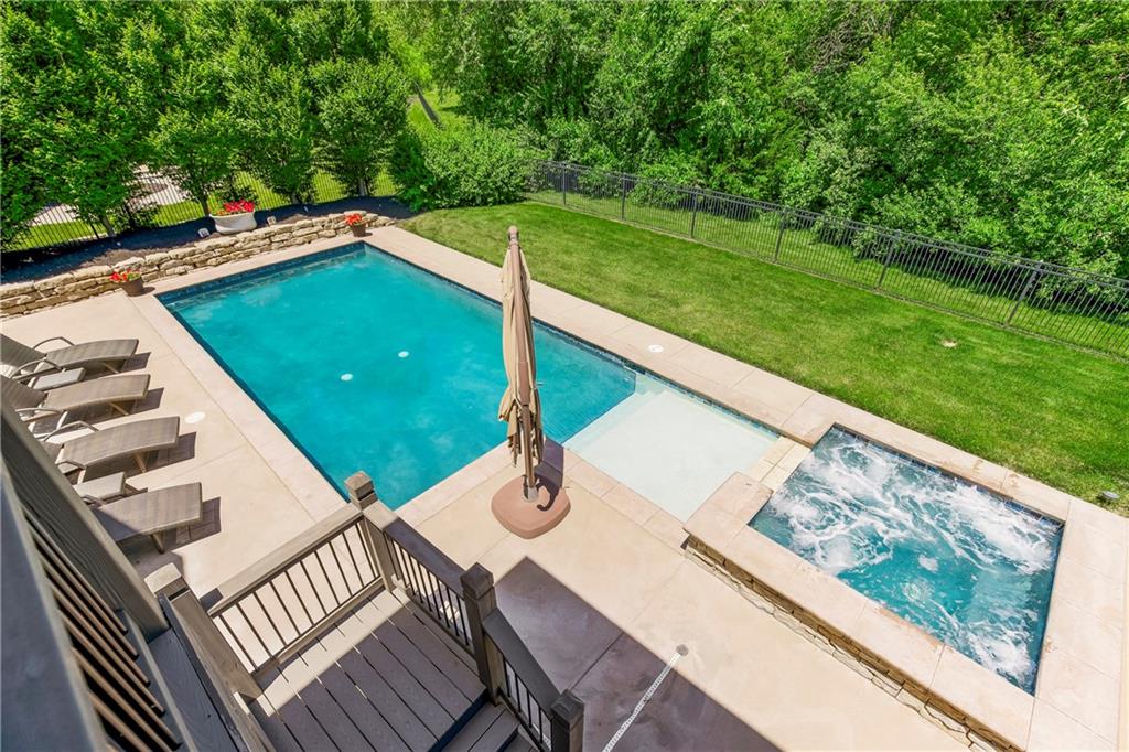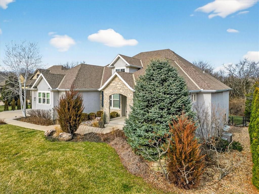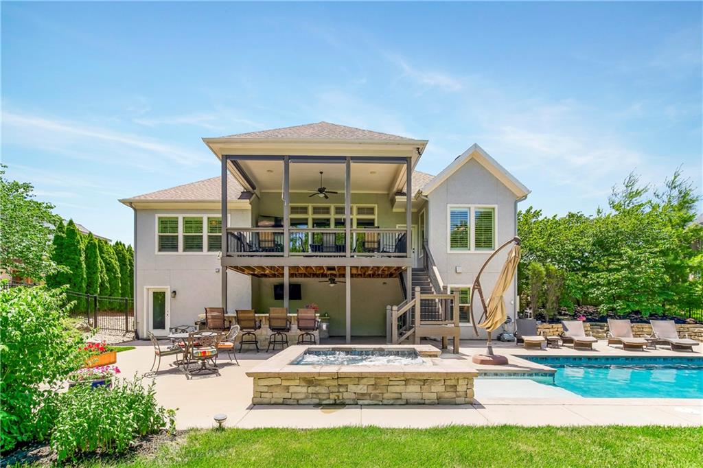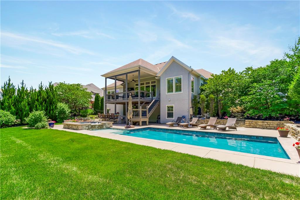Located in the highly desirable GlenAbbey community of Leawood, this reverse 1.5-story home offers something buyers consistently search for but rarely find: true one-level living paired with a backyard built for real enjoyment. The main floor delivers everyday ease, anchored by a spacious primary suite and a second bedroom—ideal for guests or office use. The layout flows comfortably through a large great room with soaring ceilings and fireplace, into a well-equipped kitchen featuring granite countertops, stainless appliances, generous island space, and direct access to the covered deck overlooking the pool. A butler’s pantry with wet bar, formal dining area, breakfast space, and main-floor laundry tucked off the primary closet add functionality without excess. But this home truly comes alive outside. A saltwater pool and expansive 10-person spa are framed by mature landscaping, a gas fire pit, and a covered outdoor kitchen—creating a private setting that feels more like a retreat than a backyard. It’s the kind of space that turns ordinary evenings into something memorable. The walkout lower level extends the lifestyle even further, with two additional bedrooms, a media area, wet bar, and a dedicated weight room/exercise space. A second laundry room and full bath provide practical access for pool days and guests alike. The suspended three-car garage offers substantial storage and future flexibility. This is not a “showpiece” home. It’s a lifestyle home—solid, spacious, and ready for its next owner to refine and personalize over time. The bones are here. The setting is exceptional. And the opportunity to elevate what already exists is real. In the heart of Leawood, within one of its most established and sought-after neighborhoods, this is a chance to secure space, location, and outdoor living in one package.