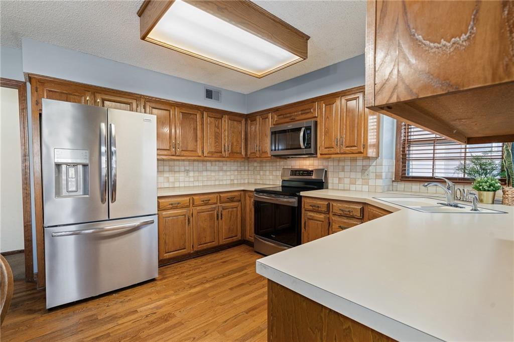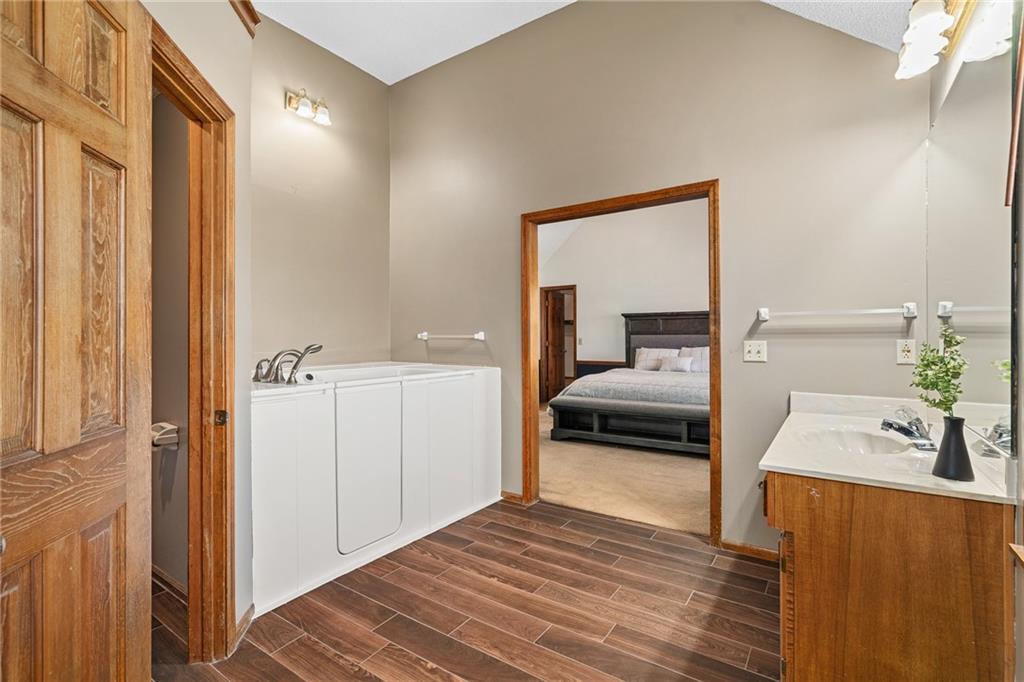 This one is a true find! The primary suite is a stunner w/attached room separated by doors. Could be office/den/exercise room you've dreamt of. The massive walk in closet will leave you speechless. On suite bath w/split vanities, tub and shower. Three more bedrooms upstairs + bath featuring double vanity. Stone facade matches the stone fireplace. Main level layout is excellent w/eat in kitchen, large formal dining, living room, sitting room. laundry room and half bath adjacent to garage is perfect drop zone. Daylight basement w/finished rec room + full bath. Plenty of unfinished storage. Back yard has a full wood privacy fence, large wood deck, and a magnolia tree. Flat driveway. Garage is approx 23x18. Deck is approx 13x23.