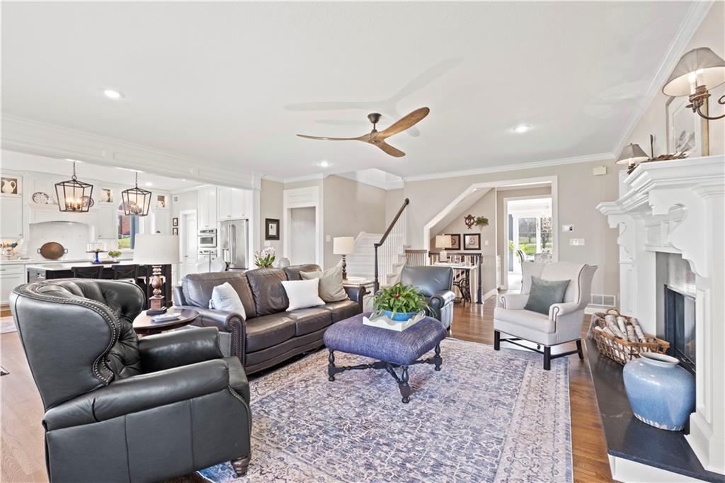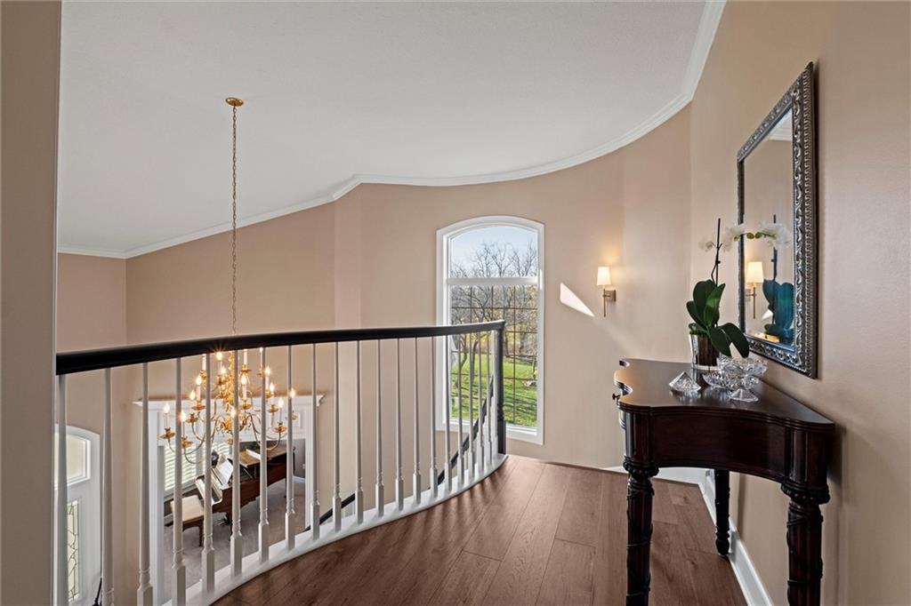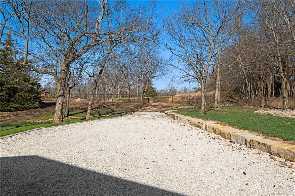 Welcome to this 10 acre estate in prime Overland Park location! Nestled at the end of a long private drive lined with vibrant October Glories, this timeless 4 bedroom, 4.5-bath home has been meticulously maintained and offers the perfect blend of luxury, charm, and privacy all just minutes from 69 highway. Set on 10 breathtaking acres backing up to 31 acres of wooded conservation land, this estate offers serene views, a pond, and endless possibilities for recreation or future development. The heart of the home is the open and bright main level featuring formal dining, formal living room, office, hearth room with see-through fireplace and a beautiful updated kitchen featuring top-of-the-line appliances, double ovens, induction cooktop, oversized island, and a spacious walk-in pantry. Upstairs, newly installed wood floors flow throughout the hallway and into the primary suite offering an expansive sitting area with fireplace, large primary bath and oversized walk in closet. Three additional bedrooms are upstairs, each with their own dedicated bathroom and walk in closet. The finished walk out lower level includes a second kitchen area, media room, home office, and additional living space. Outside, you'll find a beautifully maintained drive through barn that houses a fully updated kitchen complete with granite countertops, custom cabinetry, and a walk-in cooler room ideal for hobbies or catering needs. Store outdoor equipment, machinery, and cars in this expansive barn with separate shop and stairs leading to an upper level for additional storage space. Along with a list of updates, the exterior was freshly painted along with a new hot water heater installed last year. Just minutes from 69 Highway, and within the Blue Valley School District this rare home offers easy access to top-tier shopping, dining, and everyday conveniences. Whether you’re seeking a private family estate or land with development potential, this property offers it all! Open House 3/14, 1:00-3:00pm
