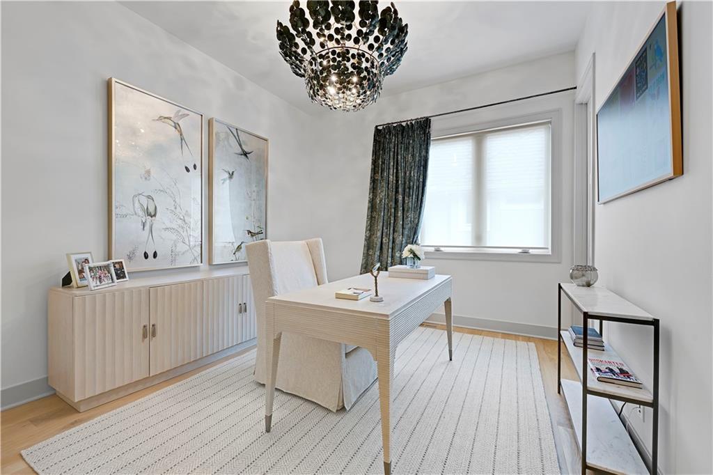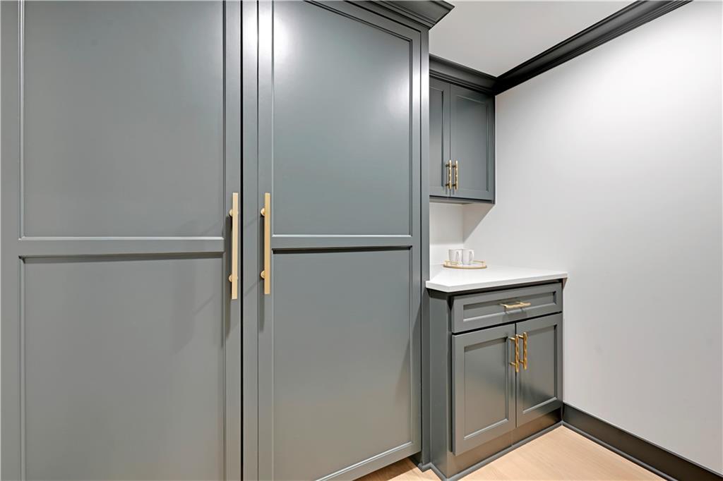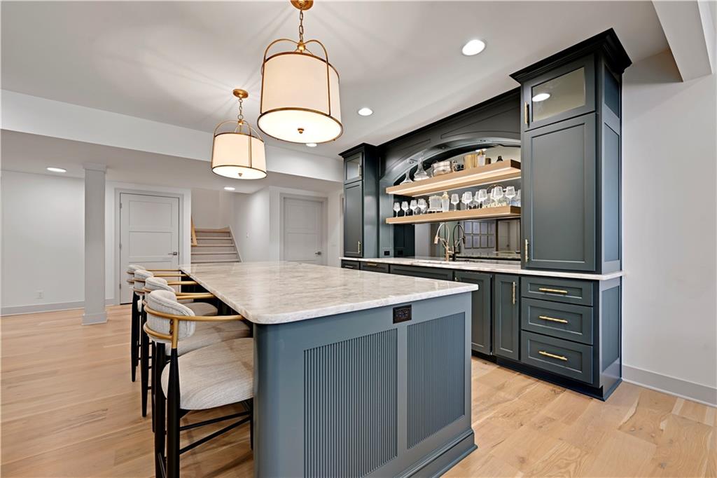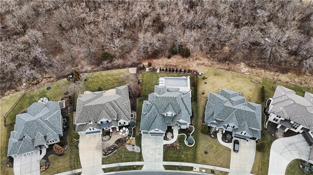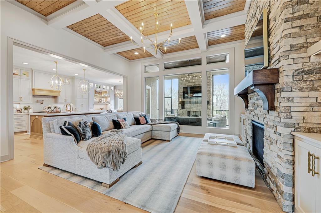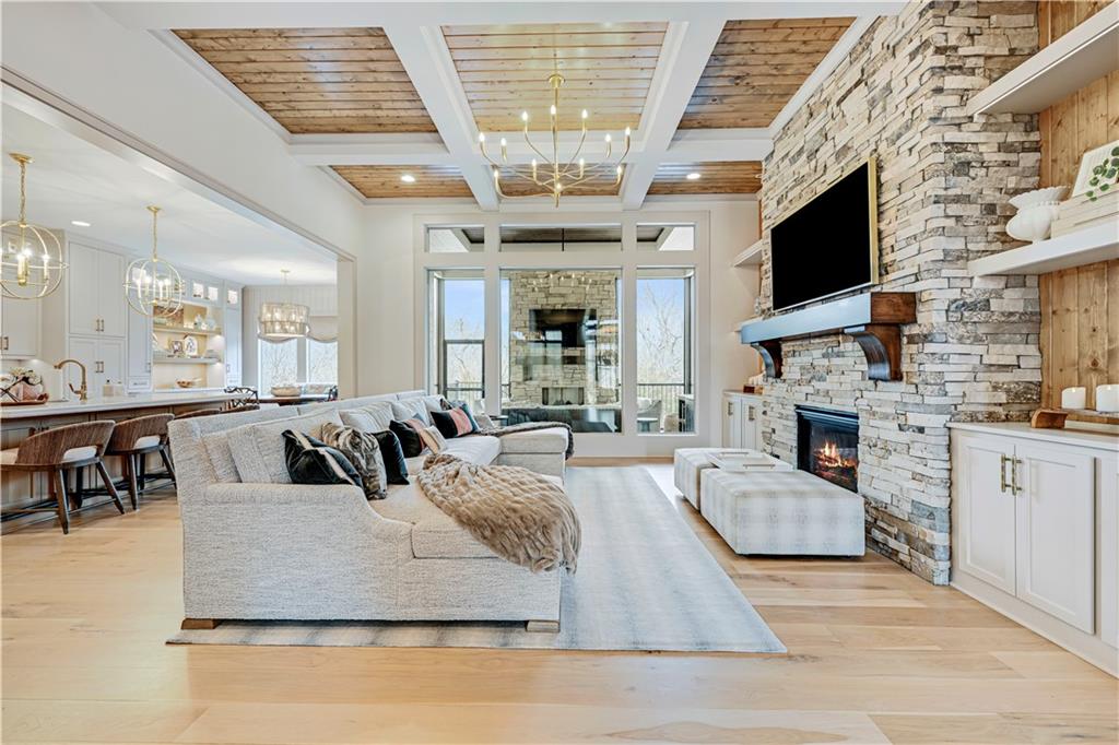 Completely reimagined by the original builder, John Geer and Erica Rigdon of Style & Grace Designs, this stunning Mills Farm 1.5-story with finished lower level is a masterclass in design. Wide plank hardwoods flow throughout, complemented by designer lighting, remote-controlled custom drapery & shades, and gold/brass fixtures at every turn. The main floor wows with a great room featuring stacked stone fireplace, built-ins, and a library-style Tongue&Groove ceiling. The chef's kitchen boasts quartzite countertops, a full-size built-in refrigerator & freezer, 6-burner gas range, pot filler, farm sink, pantry with full sink & ice maker in room adjacent to kitchen. All rooms have meticulously designed cabinetry. The screened porch with stone fireplace, beverage fridge, and staircase to the pool is an entertainer's dream. The private primary suite features a Tongue&Groove tray ceiling, spa bath with heated floors, soaking tub, double shower, and a fully redesigned closet. Continuing on Main Floor, there is a 2nd Bedroom and Full Bath. The Second Floor finds Three additional bedrooms each have en-suite baths, walk-in closets, and designer details. Plus a Loft with built-in cabinetry creates the perfect place to relax, enjoy a game or read. The lower level rivals a luxury resort — a show-stopping wet bar with exotic stone island, full-size fridge/freezer, ice maker & mirrored floating shelves anchors the space alongside a recration room with cast stone fireplace and flex/exercise room. 6th Bedroom and Bath is private retreat for guests or family. Outside, enjoy a gunite pool, extensive decking, covered lower-level pool entry, oversized front porch with bubble fountain, and a charming porch swing. Blue Valley Schools. This home cannot be replicated at this price