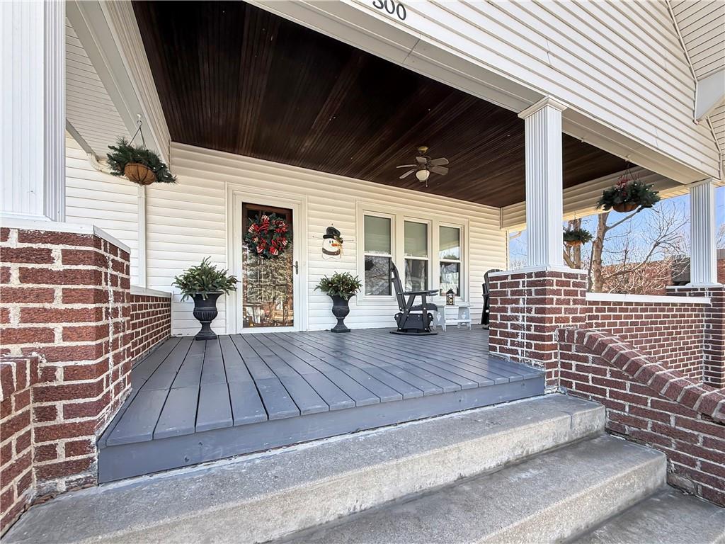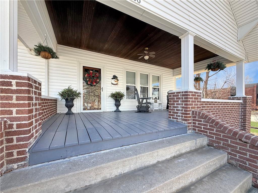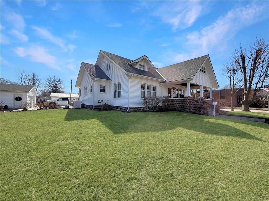 Step into timeless charm and character in this beautifully maintained home featuring classic woodwork, spacious rooms, and a welcoming layout. From the moment you arrive, the inviting covered front porch with brick columns and wood ceiling sets the tone for relaxing mornings and quiet evenings. Inside, you will find gorgeous hardwood floors, large windows that fill the home with natural light, and spacious living areas perfect for gathering with family and friends. The formal dining room flows seamlessly through original glass French doors into the comfortable living room, creating a warm and functional space for everyday living and entertaining. The kitchen offers an abundance of cabinetry, generous counter space, and a layout designed for both convenience and functionality. Just off the kitchen is easy access to the backyard and additional storage areas. The home features generously sized bedrooms, including a spacious primary bedroom with plenty of room to unwind. Bathrooms are updated and thoughtfully positioned for convenience. Outside, the property continues to impress with a large detached garage offering excellent storage for vehicles, tools, and hobbies. The yard provides plenty of space for outdoor enjoyment while maintaining a manageable footprint. This home combines classic character with modern comfort and has been well cared for throughout the years. With beautiful wood floors, spacious rooms, and an inviting front porch, it offers the charm so many buyers are searching for today.
