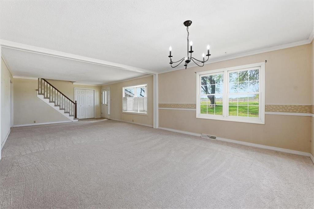 This 5-acre country property is one of a kind! It offers space, versatility and an impressive lineup of outbuildings. The ranch home has new carpet and a new roof, with 2 large bedrooms plus a spacious kitchen. Multiple sunroom additions and sculptured outdoor living spaces allow for plenty of natural light. Enjoy a wrap-around back deck and gazebo with peaceful views. Property includes: -- large barn/stable with stalls and a connected additional dwelling unit with bedroom, full bath and kitchen (ideal for guests or rental); -- detached 3-car garage with office potential, set up for heat; -- RV storage building with oversized bay and extra 'toy' storage; -- greenhouse; -- multiple, high-quality chicken coops. This property is perfect for a hobby farm, home-based business or multi-generational living. Peaceful setting just minutes from town. See second photo for proposed survey. The pond is NOT INCLUDED in the 5-acre tract.