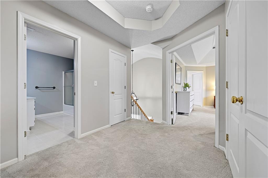Stunning estate two-story home on 1.2 acres in a quiet cul-de-sac with extensive, mature landscaping! This 4 bedroom, 4 full bath home offers a spacious open floor plan ideal for everyday living and entertaining. The updated kitchen features custom cabinetry, a massive island, and abundant prep and storage space, opening to a light-filled great room with fireplace. The luxurious primary suite boasts a spa-like updated bath and an oversized walk-in closet. Spacious secondary bedrooms plus a private guest suite. The finished basement offers tons of natural light and an additional full bath—perfect for a rec room, home gym, or office. Enjoy energy efficiency with a geothermal HVAC system. Outdoor living shines with a massive patio and pergola, perfect for entertaining. A detached 19’x24’ garage with an 8’x12’ overhead door and floored attic provides excellent storage and workshop space. This rare estate-style property offers privacy, space, and luxury—don’t miss it!