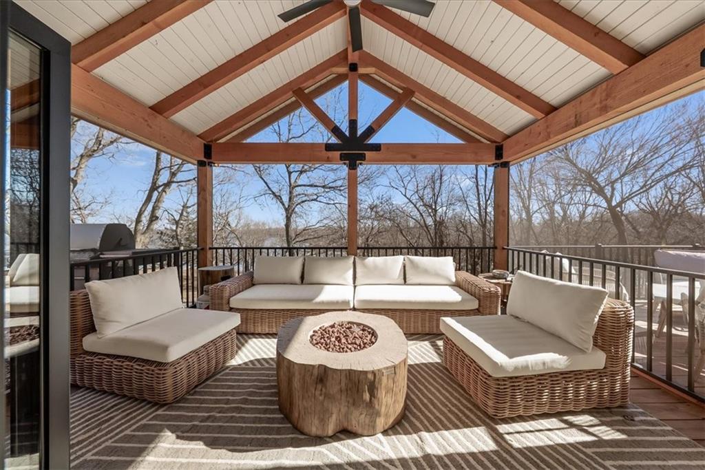 Welcome to your own slice of paradise at the lake! This stunning ranch-style lakefront home at Lake Pomona offers 5 bedrooms and 4 bathrooms, and has been meticulously updated and lovingly maintained. A marble-tiled entry welcomes you into an expansive eat-in kitchen featuring abundant prep space, extensive countertops, and a large center island with seating for four—perfect for gathering with family and friends. Just off the kitchen, a sitting room with louvered folding patio doors opens to a three-season room and onto a renovated deck overlooking the beautifully maintained grounds, complete with a putting green and tranquil pond. The formal dining room is conveniently located just steps away, making entertaining effortless. The main level includes a spacious primary en-suite retreat with a soaking tub, separate shower, and generous vanity. Two additional bedrooms and a full bath with double sinks and a walk-in shower complete the main floor. The finished lower level offers even more living space with a large family room, two additional bedrooms—one currently designed as a bunk room that sleeps eight—plus a full bath and laundry area. Step outside from the lower level to enjoy the fire pit and pathway leading directly to the double dock. Designed for making memories, this exceptional lakefront property is the perfect weekend escape for large families and year-round enjoyment.